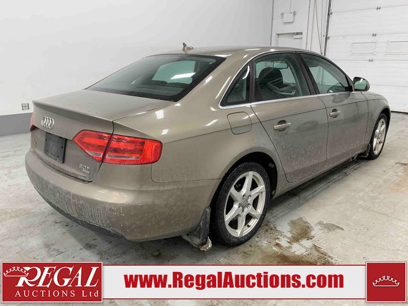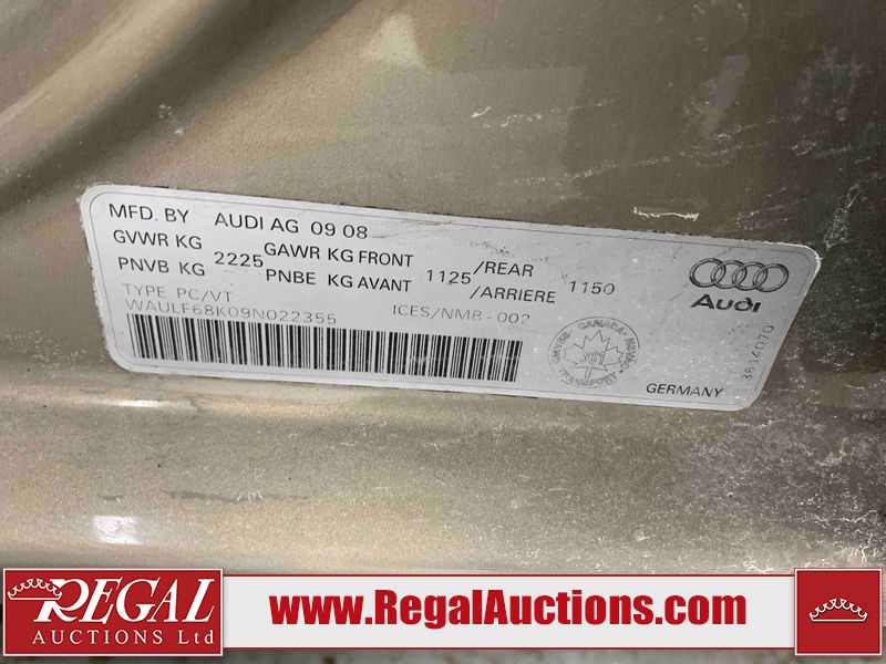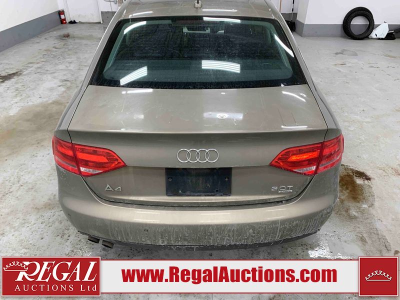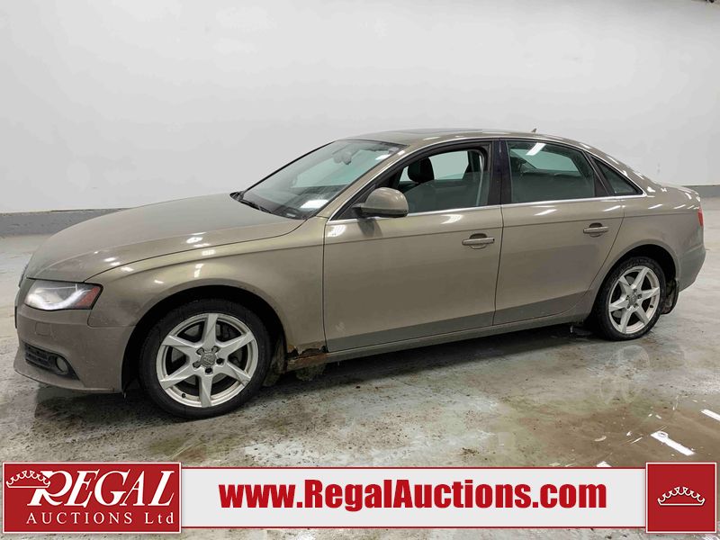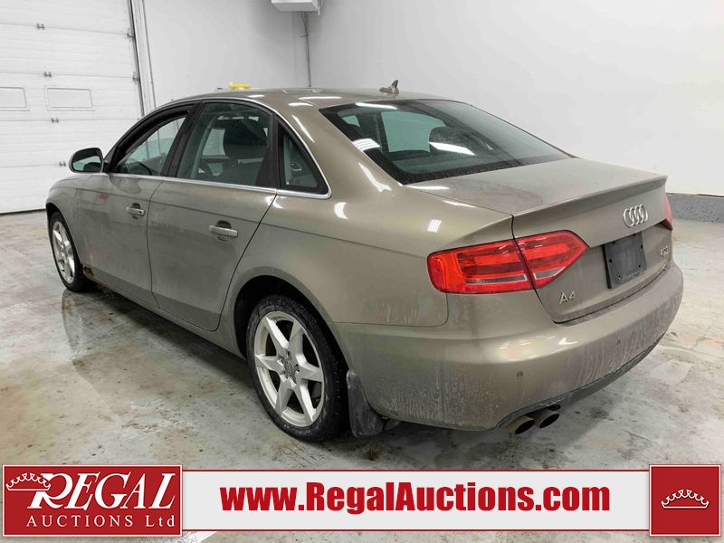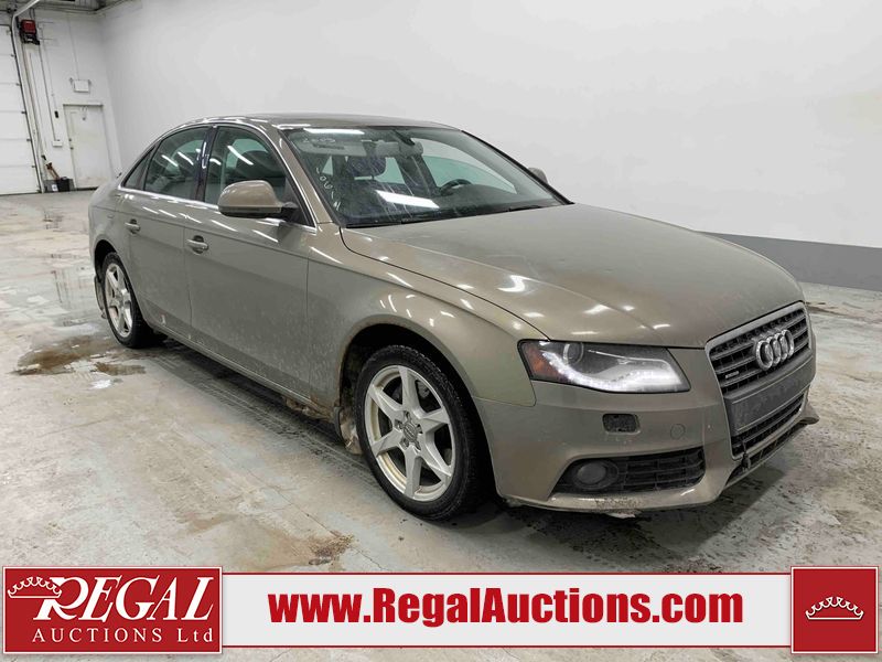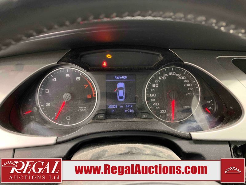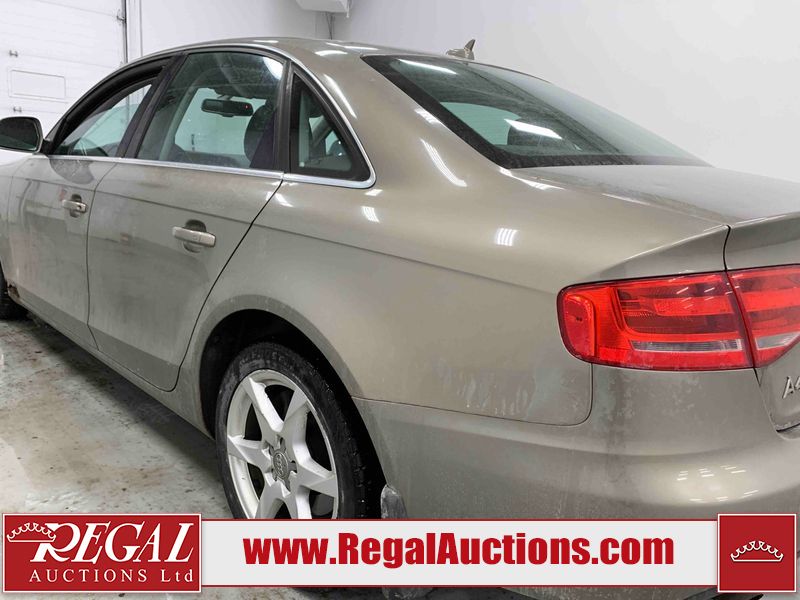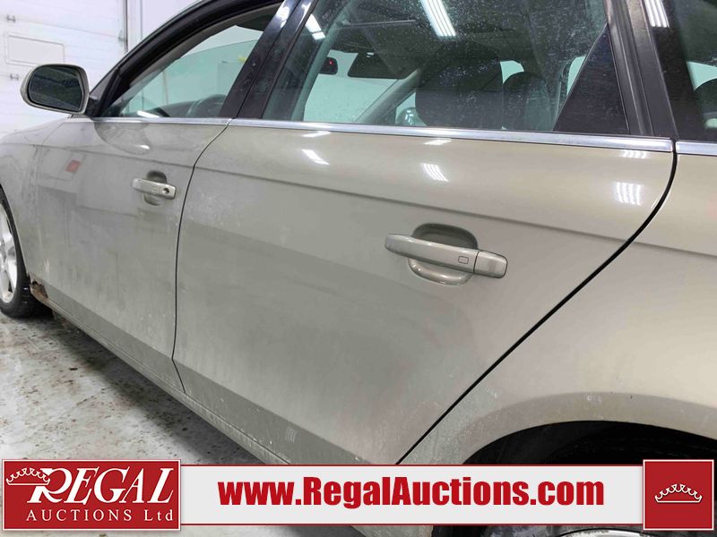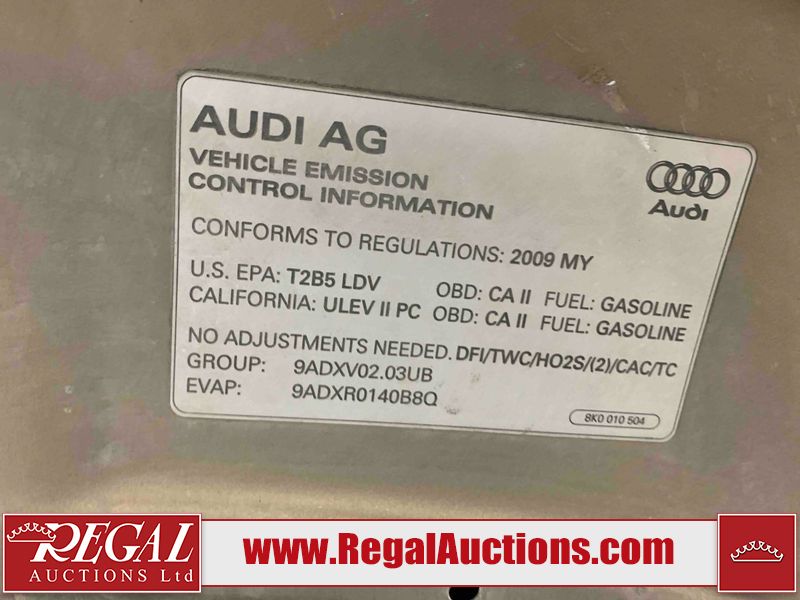 This 2009 AUDI A4 4D SEDAN is powered by a turbocharged 2.0L 4-cylinder gasoline engine and an automatic transmission. It is equipped with all-wheel drive. The car has seats for 5 people. The car has high mileage for its age. The vehicle has high-value options including a sunroof, leather upholstery, power seats, heated seats, navigation, and a backup camera. The Check Engine light is on. The body looks to be in rough condition overall. There is considerable hail on the hood, roof, and trunk lid. There is severe rust on the left front fender. There is moderate rust on the right front fender. There are minimal chips on the front bumper, hood, and roof. There are scratches on the front bumper. There is slight rust on the left rear fender and right rear fender. There is minimal hail on the left rear fender and right rear fender. There is dent damage on the right rear door. There are very minor chips in many areas around the body. There are very minor scratches in many areas around the body. The interior looks to be in fair condition overall. The driver's seat is torn. The passenger seat is worn. The rear seats and doors are dirty. The windshield is damaged. All of the tires have lots of tread remaining. This car is being sold by an automotive broker. Regal Auctions Ltd. makes no guarantee or warranty, either express or implied, with respect to the data provided in this report. The information has been provided from the consignor and from sources generally believed to be reliable, however the accuracy of this information cannot be guaranteed by Regal Auctions.