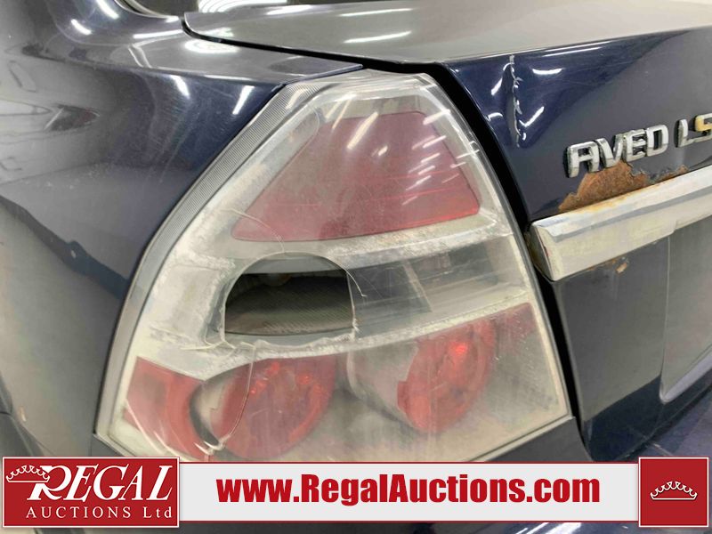 This 2009 CHEVROLET AVEO LS 4D SEDAN is powered by a 1.6 liter 4-cylinder gasoline engine and a 5-speed manual transmission. The car has seats for 5 people. The car has low mileage for its age. The vehicle does not have power windows, power locks, a radio, or air conditioning. The vehicle has some mechanical problems. *FLASHING CHECK ENGINE LIGHT* (See Footnote 1) The body looks to be in rough condition overall. There is severe dent damage on the hood. There is severe rust on the left rear door and left rear fender. There are considerable scratches on the rear bumper. There is some rust on the roof, left front door, and right front door. There is a fair amount of hail on the roof and trunk lid. There are noteworthy scratches on the left front fender. There are minimal chips on the front bumper, hood, left front fender, right rear fender, and right front fender. There are minimal scratches on the hood, left front door, left rear door, trunk lid, right rear fender, right rear door, right front door, and right front fender. There is incidental dent damage on the rear bumper. There is rust on the right rear fender. The taillights are broken. The hood is damaged. The interior looks to be in good condition overall. The windshield is cracked. All of the tires have lots of tread remaining. This car is being sold by an automotive broker. The vehicle will be sold with the following declarations: Hail Damage (See Footnote 2) and Mechanical Problems (See Footnote 1). Footnotes: 1) We've identified some mechanical problems with the vehicle. However, the vehicle has not undergone a mechanical inspection and our findings are not to be considered a complete evaluation of the vehicle's mechanical condition. Review our Buyer Protection Policy to see how Regal Auctions protects you from undisclosed mechanical problems. 2) This vehicle shows signs of damage from a hail storm. Hail damage is not always clearly visible in photographs. Regal Auctions Ltd. makes no guarantee or warranty, either express or implied, with respect to the data provided in this report. The information has been provided from the consignor and from sources generally believed to be reliable, however the accuracy of this information cannot be guaranteed by Regal Auctions.