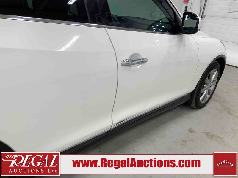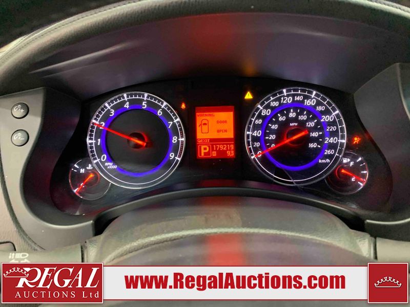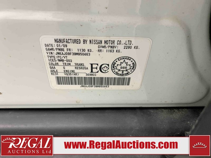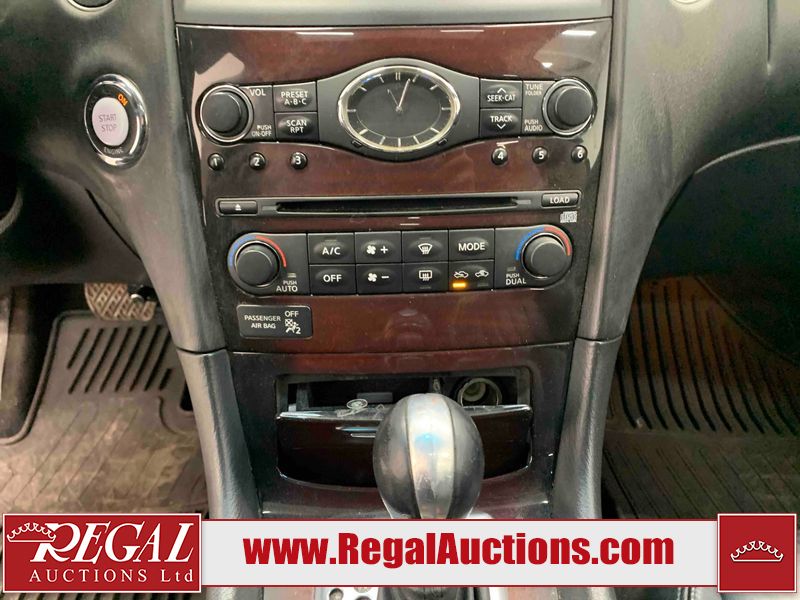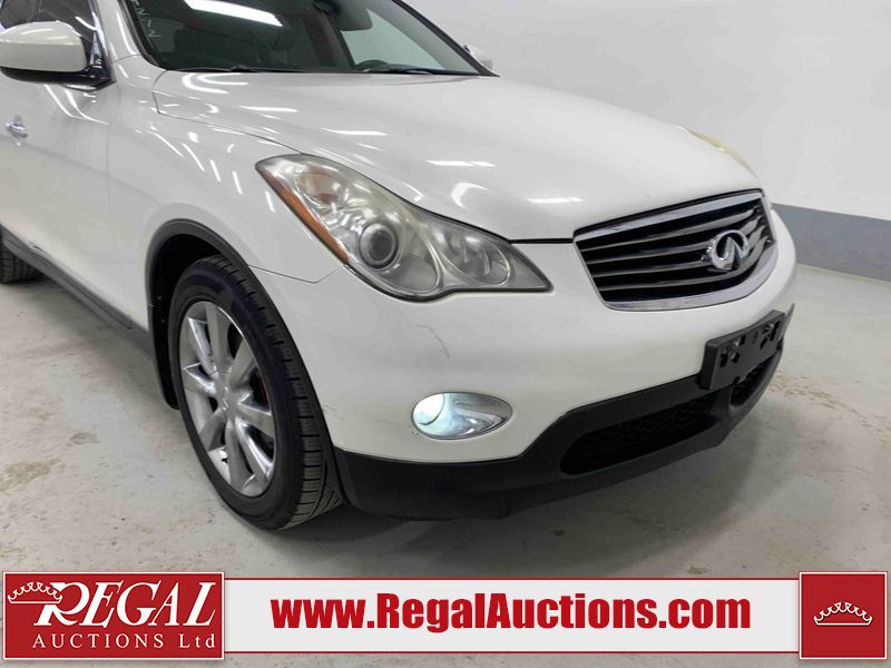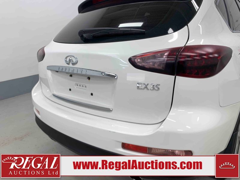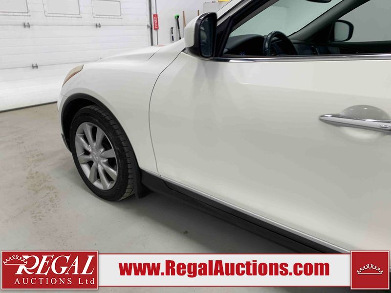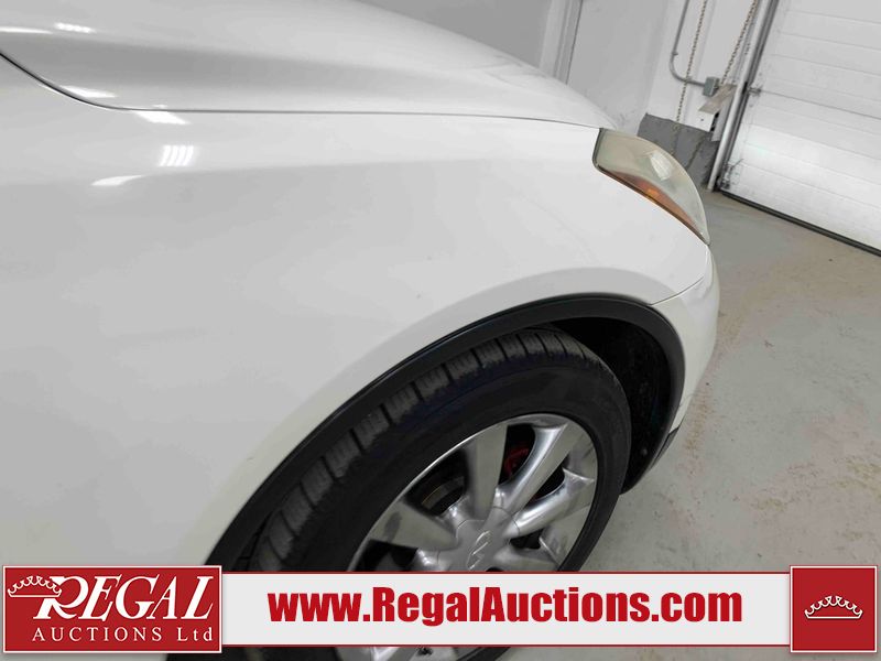 This 2009 INFINITI EX35 4D SEDAN AWD is powered by a 3.5 liter 6 cylinder gasoline engine and an automatic transmission. It is equipped with four wheel drive. The car has seats for 5 people. The car has low mileage for its age. The vehicle has high value options including a sunroof, leather upholstery, power seats, heated seats, and a backup camera. The body looks to be in fair condition overall. There are minor chips on the front bumper, grille, hood, roof, left front fender, left front door, rear bumper, right rear door, and right front door. There are minimal scratches on the front bumper, rear bumper, and trunk lid. There is minimal dent damage on the right front door. There are very minor scratches in many areas around the body. There is very minor dent damage on the left front door. There are very minor chips in many areas around the body. The interior looks to be in good condition overall. The windshield looks to be in good condition. The tires are all worn. This car is being sold by an automotive broker. The vehicle will be sold with the following declarations: Claims Total $5000 - $9999 (See Footnote 1) Out of Province - BC (Seefootnote 2) and out of province Alberta override (See Footnote 3). Footnotes: 1) The vehicle's total recorded insurance claims history is between $5,000 - $9,999. This is the amount of money that was paid out by an insurance company for repairs to cover claims against the vehicle's insurance policy. This information is provided by CarFax. 2) The vehicle's last registered jurisdiction is British Columbia. The purchaser must have the vehicle undergo and pass an Out of Province inspection before it can be registered in Alberta. 3) Out of province inspection for registering the vehicle in Alberta has been completed. Regal Auctions Ltd. makes no guarantee or warranty, either express or implied, with respect to the data provided in this report. The information has been provided from the consignor and from sources generally believed to be reliable, however the accuracy of this information cannot be guaranteed by Regal Auctions.
