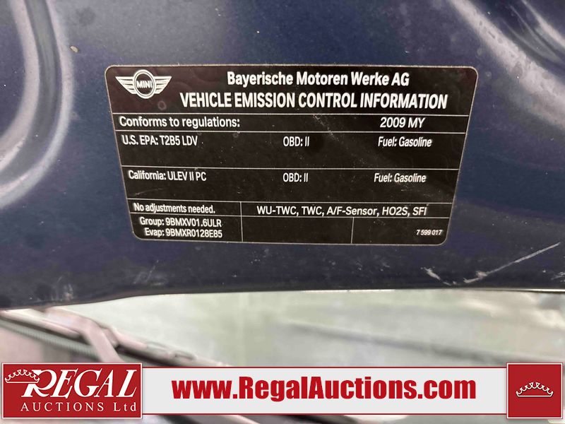 This 2009 MINI COOPER CLASSIC 2D HATCHBACK FWD is powered by a 1.6L 4-cylinder gasoline engine and an automatic transmission. The car has seats for 5 people. The car has low mileage for its age. The vehicle has high-value options including a sunroof and leather upholstery. The Check Engine light is on. The body looks to be in rough condition overall. The front bumper, hood, left front fender, left front door, left rear door, left rear fender, rear bumper, right rear fender, right rear door, right front door, and right front fender have been repainted poorly. There are minor scratches on the left rear fender, rear bumper, and right front door. There are very minor chips in many areas around the body. There are very minor scratches in many areas around the body. There is very minor dent damage in a few areas around the body. The interior looks to be in good condition overall. The windshield looks to be in good condition. The driver's side rear tire is worn. All of the other tires have lots of tread remaining. This car is being sold by an automotive broker. The vehicle will be sold with the following declarations: Claims Total $10,000 - $14,999 (See Footnote 2) and Out of Province - BC (See Footnote 3). Footnotes: 1) We've identified some mechanical problems with the vehicle. However, the vehicle has not undergone a mechanical inspection and our findings are not to be considered a complete evaluation of the vehicle's mechanical condition. Review our Buyer Protection Policy to see how Regal Auctions protects you from undisclosed mechanical problems. 2) The vehicle's total recorded insurance claims history is between $10,000 - $14,999. This is the amount of money that was paid out by an insurance company for repairs to cover claims against the vehicle's insurance policy. This information is provided by CarFax. 3) The vehicle's last registered jurisdiction is British Columbia. The purchaser must have the vehicle undergo and pass an Out of Province inspection before it can be registered in Alberta. Regal Auctions Ltd. makes no guarantee or warranty, either express or implied, with respect to the data provided in this report. The information has been provided from the consignor and from sources generally believed to be reliable, however the accuracy of this information cannot be guaranteed by Regal Auctions.