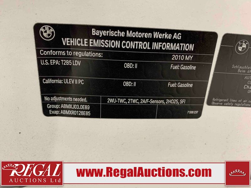 This 2010 BMW 3-SERIES XDRIVE 4D SEDAN AWD is powered by a 3.0 liter 6-cylinder gasoline engine and an automatic transmission. It is equipped with all-wheel drive. The car has seats for 5 people. The car has low mileage for its age. The vehicle has high-value options, including a sunroof, leather upholstery, power seats, and heated seats. The vehicle has some mechanical problems. **EXHAUST NEEDS REPAIR** (See Footnote 1) The body looks to be in good condition overall. There are slight chips on the front bumper. There are chips in many areas around the body. There are scratches in a few areas around the body. The interior looks to be in good condition overall. The driver's seat is torn. The windshield looks to be in good condition. All of the tires have lots of tread remaining. This car is being sold by a private individual. The vehicle will be sold with the following declarations: Mechanical Problems (See Footnote 1). Footnotes: 1) We've identified some mechanical problems with the vehicle. However, the vehicle has not undergone a mechanical inspection and our findings are not to be considered a complete evaluation of the vehicle's mechanical condition. Review our Buyer Protection Policy to see how Regal Auctions protects you from undisclosed mechanical problems. Regal Auctions Ltd. makes no guarantee or warranty, either express or implied, with respect to the data provided in this report. The information has been provided from the consignor and from sources generally believed to be reliable, however the accuracy of this information cannot be guaranteed by Regal Auctions.