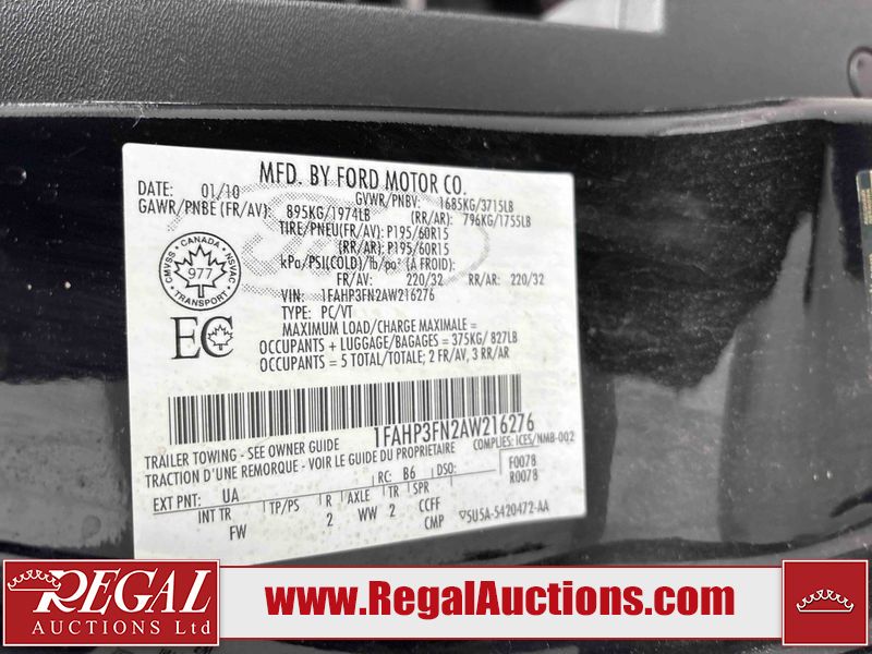 This 2010 FORD FOCUS SE 4D SEDAN is powered by a 2.0L 4-cylinder gasoline engine and an automatic transmission. The car has seats for 5 people. The mileage is average considering the car's age. The Tire Pressure light is on. The body looks to be in rough condition overall. There is severe rust on the left front door and right front door. There is pronounced rust on the hood, roof, left rear door, right rear fender, and right rear door. The trunk lid has been repainted poorly. There are slight chips on the front bumper and left rear door. There are scratches on the rear bumper. There are very minor scratches in many areas around the body. There are very minor chips in many areas around the body. The interior looks to be in good condition overall. The windshield is cracked. All of the tires have lots of tread remaining. This car is being sold by an automotive broker. Regal Auctions Ltd. makes no guarantee or warranty, either express or implied, with respect to the data provided in this report. The information has been provided from the consignor and from sources generally believed to be reliable, however the accuracy of this information cannot be guaranteed by Regal Auctions.