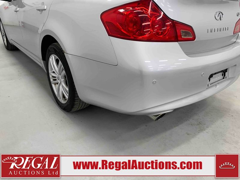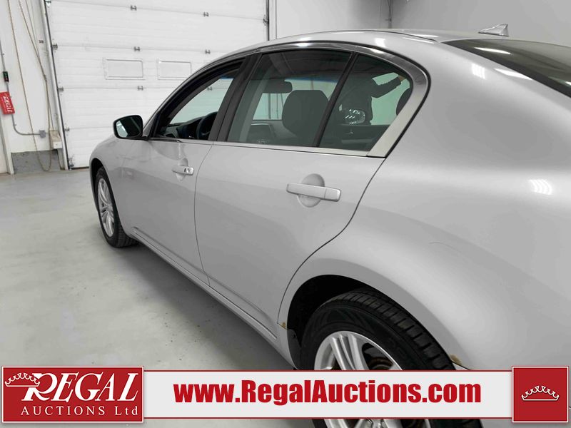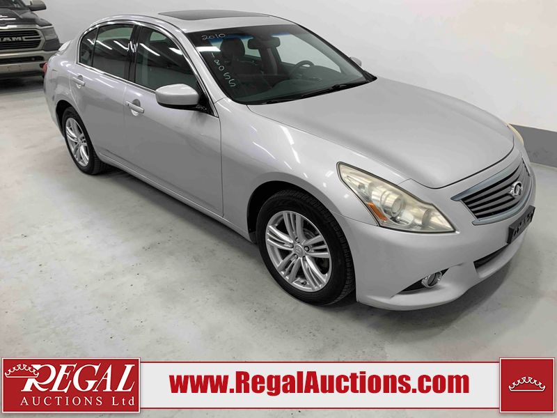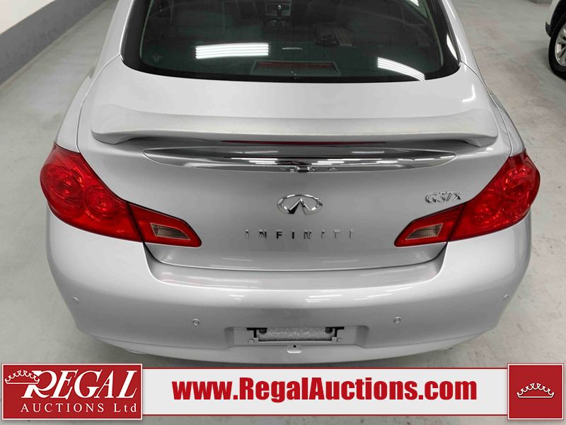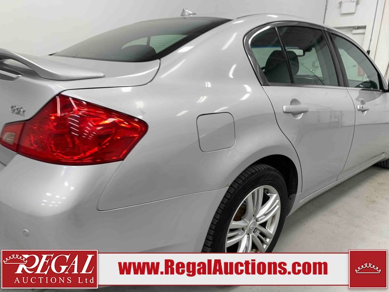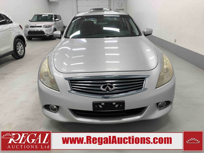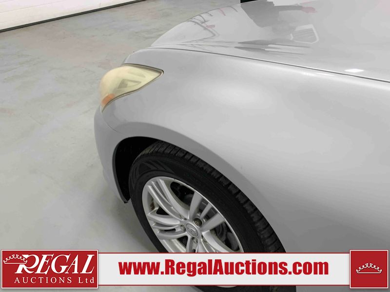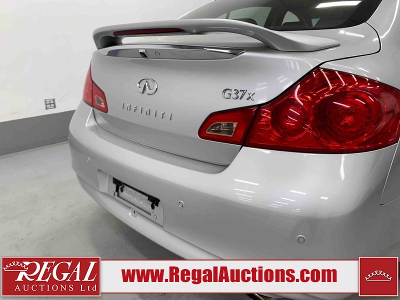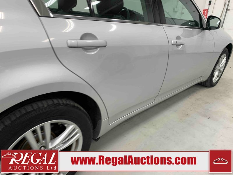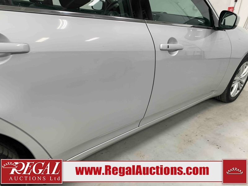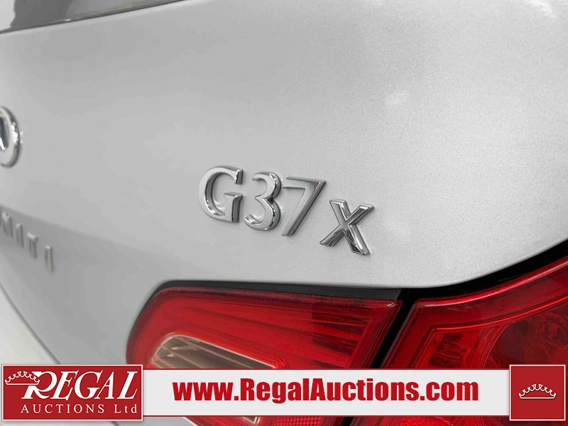 This 2010 INFINITI G37X 4D SEDAN is powered by a 3.7L V6 gasoline engine and an automatic transmission. It is equipped with all-wheel drive. The car has seats for 5 people. The car has low mileage for its age. The vehicle has high-value options, including a sunroof, leather upholstery, power seats, heated seats, navigation, and a backup camera. The Tire Pressure light is on. The body looks to be in fair condition overall. There is conspicuous paint fade on the trunk lid. There are scratches on the front bumper, hood, roof, left rear fender, and rear bumper. There are chips on the front bumper, hood, and roof. There is rust on the left rear fender and right rear fender. There are very minor chips in many areas around the body. There are very minor scratches in many areas around the body. The headlight lenses are hazy. The interior looks to be in good condition overall. The windshield looks to be in good condition. The tires are all worn. This car is being sold by an automotive broker. The vehicle will be sold with the following declarations: Out of Province - ON (See Footnote 1). Footnotes: 1) The vehicle's last registered jurisdiction is Ontario. The purchaser must have the vehicle undergo and pass an Out of Province inspection before it can be registered in Alberta. Regal Auctions Ltd. makes no guarantee or warranty, either express or implied, with respect to the data provided in this report. The information has been provided from the consignor and from sources generally believed to be reliable, however the accuracy of this information cannot be guaranteed by Regal Auctions.