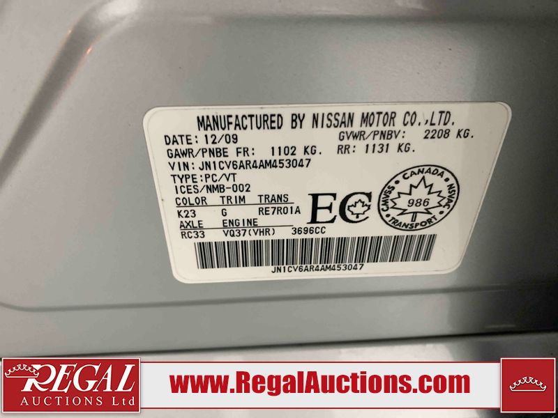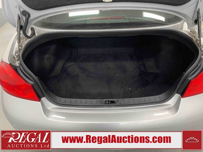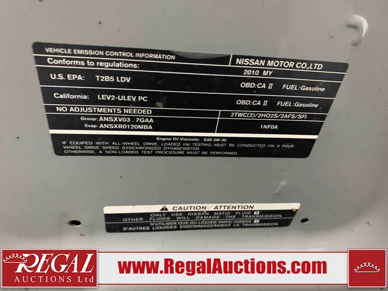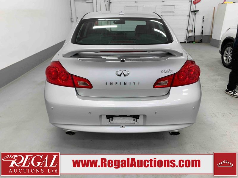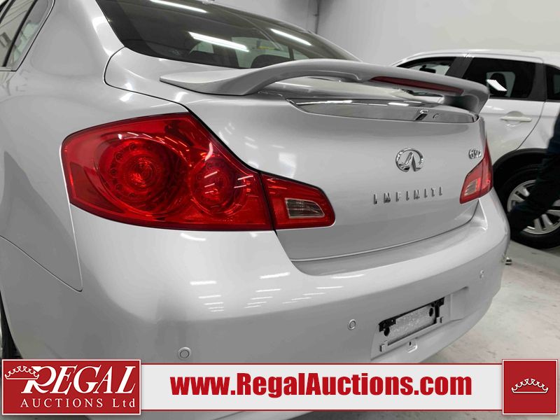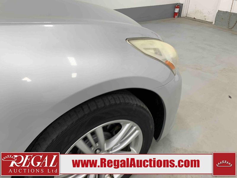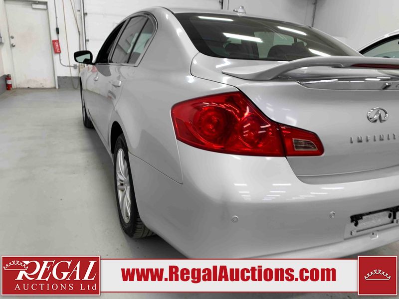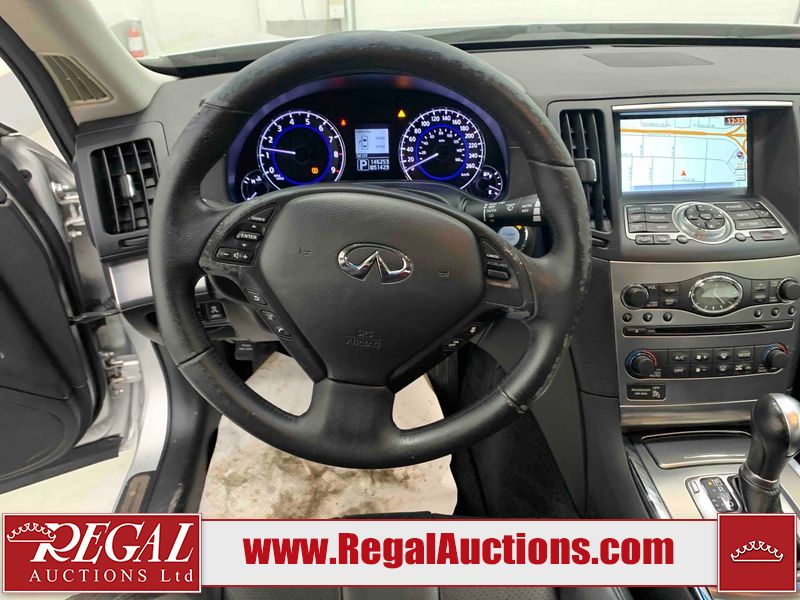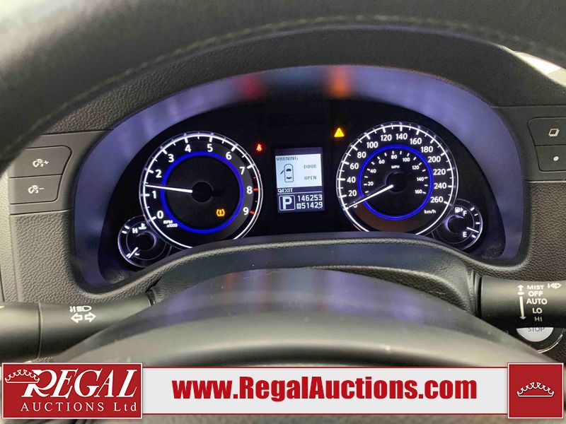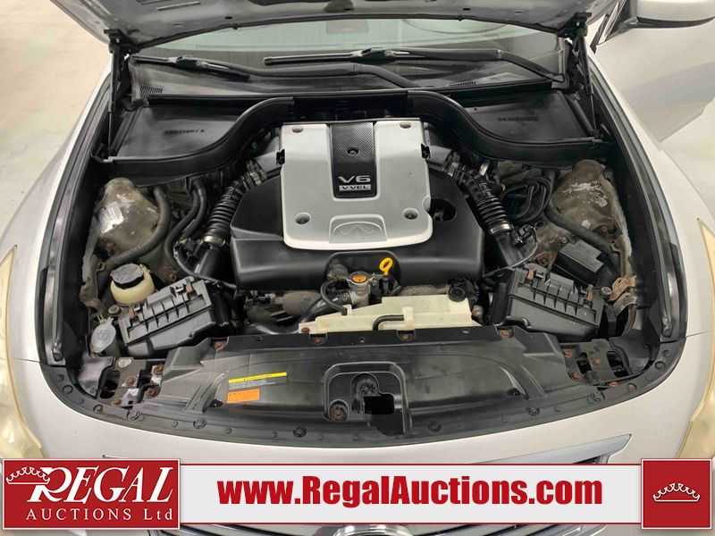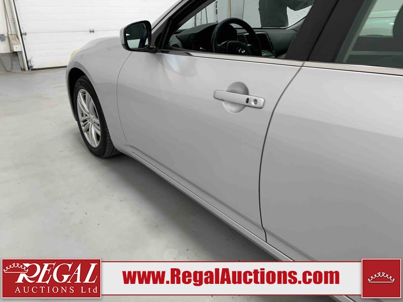 This 2010 INFINITI G37X 4D SEDAN is powered by a 3.7L V6 gasoline engine and an automatic transmission. It is equipped with all-wheel drive. The car has seats for 5 people. The car has low mileage for its age. The vehicle has high-value options, including a sunroof, leather upholstery, power seats, heated seats, navigation, and a backup camera. The Tire Pressure light is on. The body looks to be in fair condition overall. There is conspicuous paint fade on the trunk lid. There are scratches on the front bumper, hood, roof, left rear fender, and rear bumper. There are chips on the front bumper, hood, and roof. There is rust on the left rear fender and right rear fender. There are very minor chips in many areas around the body. There are very minor scratches in many areas around the body. The headlight lenses are hazy. The interior looks to be in good condition overall. The windshield looks to be in good condition. The tires are all worn. This car is being sold by an automotive broker. The vehicle will be sold with the following declarations: Out of Province - ON (See Footnote 1). Footnotes: 1) The vehicle's last registered jurisdiction is Ontario. The purchaser must have the vehicle undergo and pass an Out of Province inspection before it can be registered in Alberta. Regal Auctions Ltd. makes no guarantee or warranty, either express or implied, with respect to the data provided in this report. The information has been provided from the consignor and from sources generally believed to be reliable, however the accuracy of this information cannot be guaranteed by Regal Auctions.