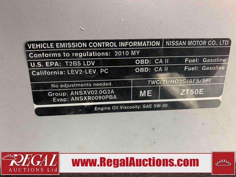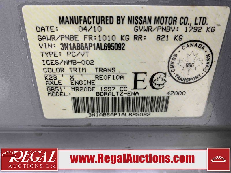 This 2010 NISSAN SENTRA 4D SEDAN is powered by a 140HP 2L 4 cylinder gasoline engine and an automatic transmission. The car has seats for 5 people. The car has low mileage for its age. The body looks to be in good condition overall. There are incidental chips on the front bumper and hood. There are minor scratches on the rear bumper and trunk lid. There are very minor chips in many areas around the body. There are very minor scratches in a few areas around the body. The interior looks to be in good condition overall. The windshield looks to be in good condition. All of the tires have lots of tread remaining. This car is being sold by an automotive broker. The vehicle will be sold with the following declarations: Claims Total $5000 - $9999 (See Footnote 1) and Out of Province - BC (See Footnote 2) and Out of Province - AB OVERRIDE (See Footnote 3). Footnotes: 1) The vehicle's total recorded insurance claims history is between $5,000 - $9,999. This is the amount of money that was paid out by an insurance company for repairs to cover claims against the vehicle's insurance policy. This information is provided by CarFax. 2) The vehicle's last registered jurisdiction is British Columbia. The purchaser must have the vehicle undergo and pass an Out of Province inspection before it can be registered in Alberta. 3) Out of province inspection for registering the vehicle in Alberta has been completed. Regal Auctions Ltd. makes no guarantee or warranty, either express or implied, with respect to the data provided in this report. The information has been provided from the consignor and from sources generally believed to be reliable, however the accuracy of this information cannot be guaranteed by Regal Auctions.