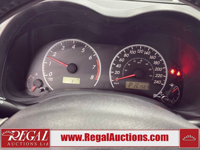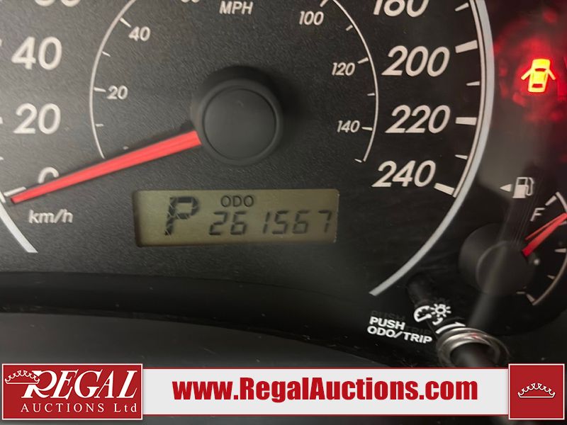 This vehicle has a 1.8 liter 4-cylinder gasoline engine and an automatic transmission. It has high mileage. The Tire Pressure light is on. The body is in fair condition. There is a fair amount of hail on the roof and trunk lid. There are incidental scratches on the front bumper, left front door, rear bumper, and right front door. There is hail on the hood. There is slight rust on the roof. The interior is in good condition. The windshield is in good condition. The tires are all okay.