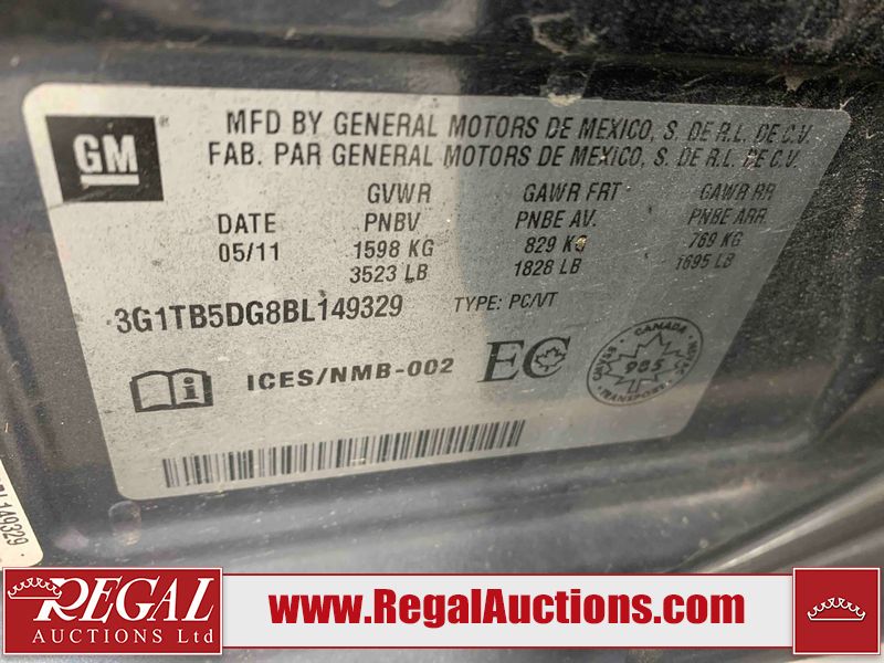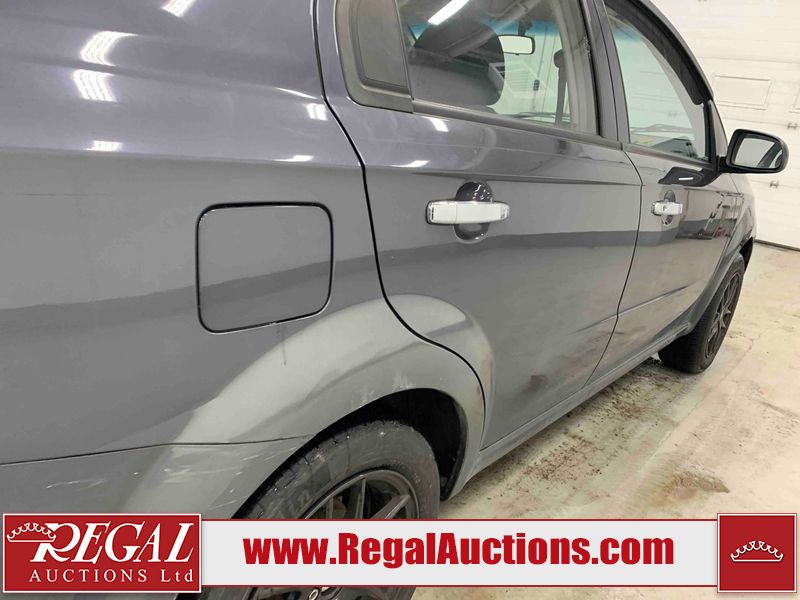 This 2011 CHEVROLET AVEO 4D SEDAN is powered by a 1.6L 4 cylinder gasoline engine and an automatic transmission. The car has seats for 5 people. The car has low mileage for its age. The vehicle does not have power windows or power locks. The Airbag light is on. The vehicle has some mechanical problems. The battery is dead. The vehicle requires a boost to start and may require a booster pack in order to stay running. (See Footnote 1) The body looks to be in rough condition overall. There is considerable dent damage on the left front door. There are scratches on the front bumper, hood, roof, left front fender, left front door, left rear door, left rear fender, rear bumper, trunk lid, right rear fender, right rear door, right front door, and right front fender. There are chips on the left front door and rear bumper. There is dent damage on the trunk lid, right rear fender, and right rear door. There are very minor chips in many areas around the body. The interior looks to be in good condition overall. The windshield looks to be in good condition. All of the tires have lots of tread remaining. This car is being sold by an automotive broker. The vehicle will be sold with the following declarations: Out of Province - BC (See Footnote 2), Out of Province - AB OVERRIDE (See Footnote 3), and Claims Total $1000 - $2999 (See Footnote 4). Footnotes: 1) We've identified some mechanical problems with the vehicle. However, the vehicle has not undergone a mechanical inspection and our findings are not to be considered a complete evaluation of the vehicle's mechanical condition. Review our Buyer Protection Policy to see how Regal Auctions protects you from undisclosed mechanical problems. 2) The vehicle's last registered jurisdiction is British Columbia. The purchaser must have the vehicle undergo and pass an Out of Province inspection before it can be registered in Alberta. 3) Out of province inspection for registering the vehicle in Alberta has been completed. 4) The vehicle's total recorded insurance claims history is between $1,000 - $2,999. This is the amount of money that was paid out by an insurance company for repairs to cover claims against the vehicle's insurance policy. This information is provided by CarFax. Regal Auctions Ltd. makes no guarantee or warranty, either express or implied, with respect to the data provided in this report. The information has been provided from the consignor and from sources generally believed to be reliable, however the accuracy of this information cannot be guaranteed by Regal Auctions.