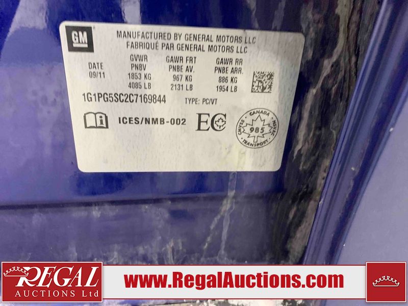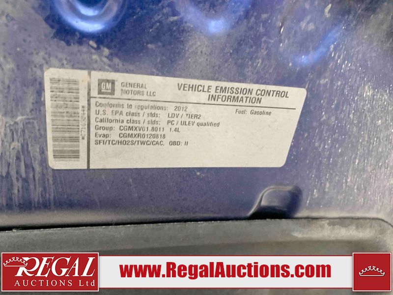 This 2012 CHEVROLET CRUZE LT 4D SEDAN is powered by a turbocharged 1.4L 4-cylinder gasoline engine and an automatic transmission. The car has seats for 5 people. The car has low mileage for its age. The Check Engine and Tire Pressure lights are on. The vehicle has some mechanical problems. The engine runs rough. (See Footnote 1) The body looks to be in fair condition overall. There is incidental rust on the left front door and right rear door. There is dent damage on the trunk lid and right rear fender. There are incidental scratches on the right rear door. There are very minor chips in many areas around the body. There are very minor scratches in many areas around the body. There is very minor dent damage in a few areas around the body. Many of the panels have been repainted. The interior looks to be in good condition overall. The windshield is cracked. All of the tires have lots of tread remaining. This car is being sold by an automotive broker. The vehicle will be sold with the following declarations: Claims Total $3000 - $4999 (See Footnote 2) and Mechanical Problems (See Footnote 1). Footnotes: 1) We've identified some mechanical problems with the vehicle. However, the vehicle has not undergone a mechanical inspection and our findings are not to be considered a complete evaluation of the vehicle's mechanical condition. Review our Buyer Protection Policy to see how Regal Auctions protects you from undisclosed mechanical problems. 2) The vehicle's total recorded insurance claims history is between $3,000 - $4,999. This is the amount of money that was paid out by an insurance company for repairs to cover claims against the vehicle's insurance policy. This information is provided by CarFax. Regal Auctions Ltd. makes no guarantee or warranty, either express or implied, with respect to the data provided in this report. The information has been provided from the consignor and from sources generally believed to be reliable, however the accuracy of this information cannot be guaranteed by Regal Auctions.