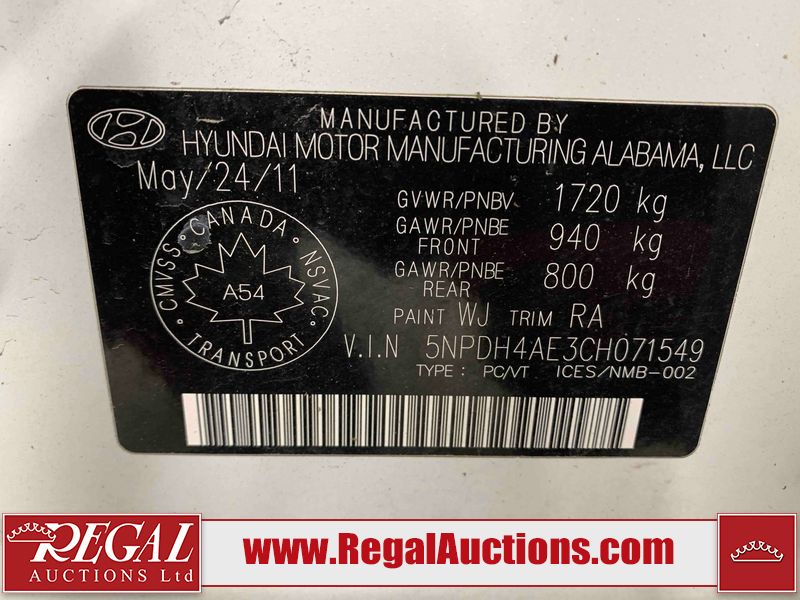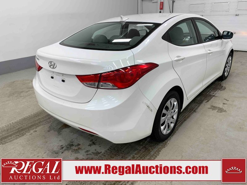 This 2012 HYUNDAI ELANTRA 4D SEDAN is powered by a 1.8 liter 4 cylinder gasoline engine and an automatic transmission. The car has seats for 5 people. The car has low mileage for its age. The vehicle has high value options including heated seats. The body looks to be in good condition overall. There are some scratches on the rear bumper. There are chips on the front bumper. There is dent damage on the rear bumper. There are chips in many areas around the body. There are scratches in a few areas around the body. The interior looks to be in good condition overall. The windshield looks to be in good condition. The passenger front tire is worn. The rest of the tires all have lots of tread remaining. This car is being sold by an automotive broker. The vehicle will be sold with the following declarations: Claims Total $3000 - $4999 (See Footnote 1), Out of Province - BC (See Footnote 2), and Out of Province - AB OVERRIDE (See Footnote 3). Footnotes: 1) The vehicle's total recorded insurance claims history is between $3,000 - $4,999. This is the amount of money that was paid out by an insurance company for repairs to cover claims against the vehicle's insurance policy. This information is provided by CarFax. 2) The vehicle's last registered jurisdiction is British Columbia. The purchaser must have the vehicle undergo and pass an Out of Province inspection before it can be registered in Alberta. 3) Out of province inspection for registering the vehicle in Alberta has been completed. Regal Auctions Ltd. makes no guarantee or warranty, either express or implied, with respect to the data provided in this report. The information has been provided from the consignor and from sources generally believed to be reliable, however the accuracy of this information cannot be guaranteed by Regal Auctions.