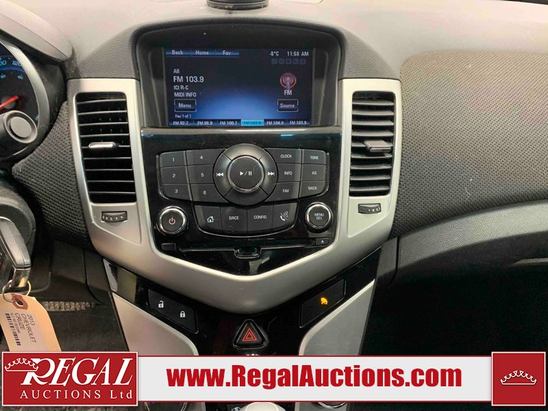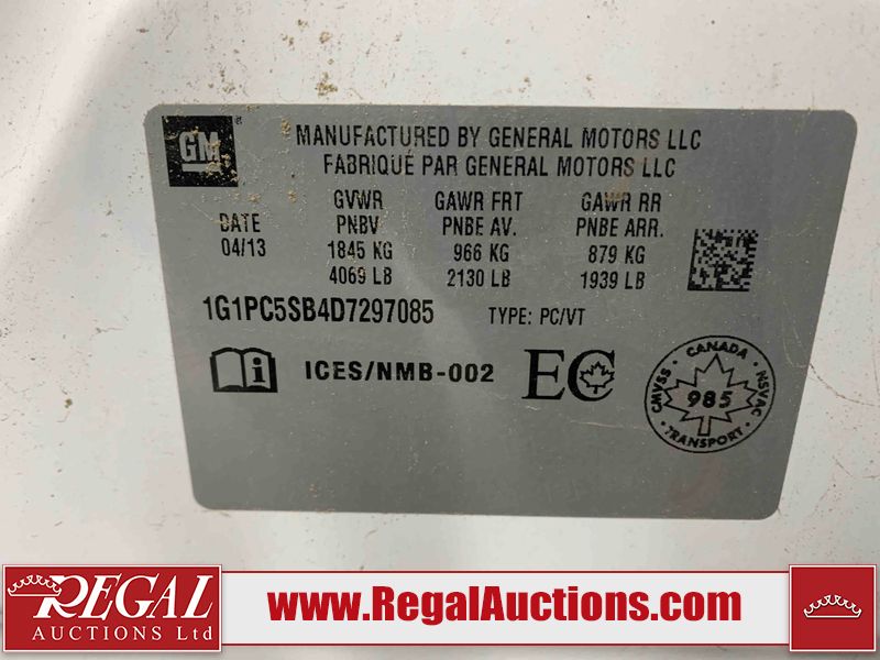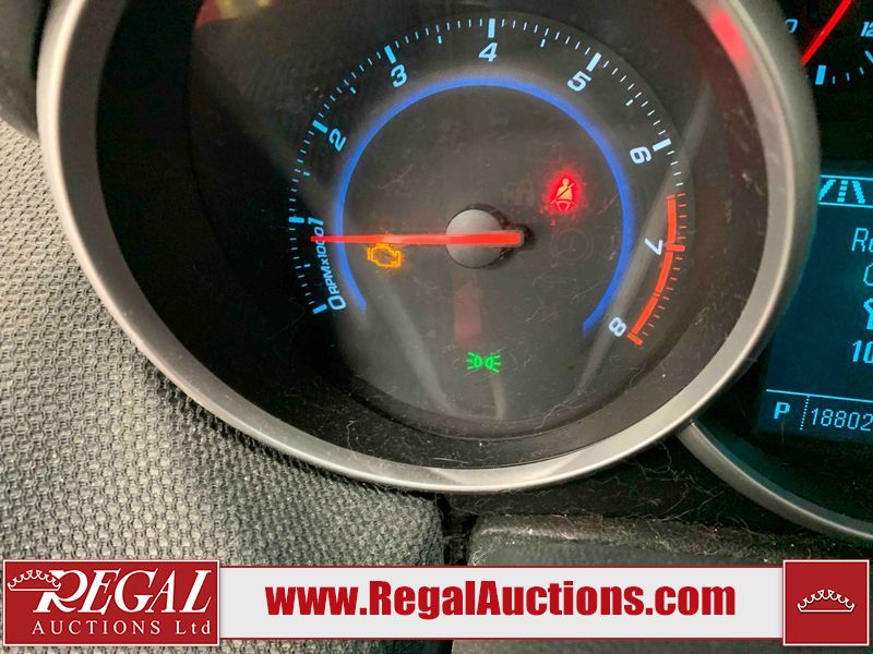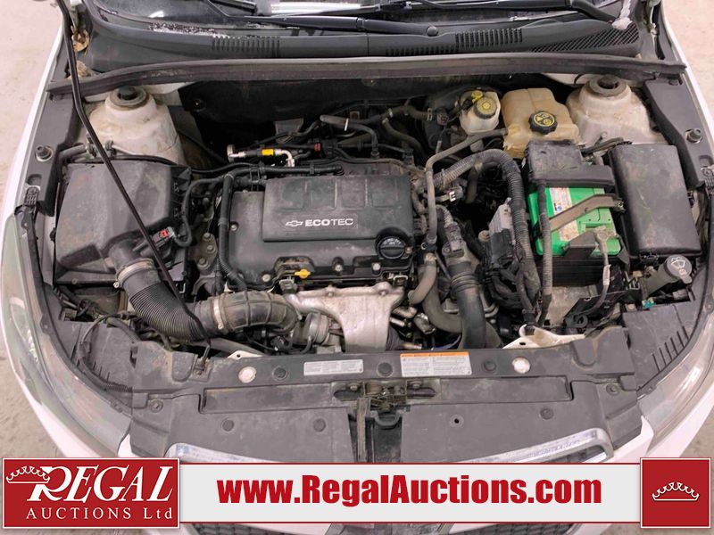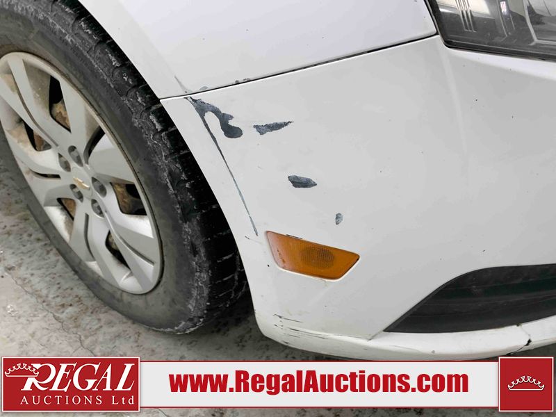 This 2013 CHEVROLET CRUZE 4D SEDAN is powered by a turbocharged 4-cylinder gasoline engine and an automatic transmission. The car has seats for 5 people. The car has low mileage for its age. The vehicle has high-value options including a backup camera. The Check Engine light is on. The body looks to be in rough condition overall. The front bumper is cracked. There is noteworthy hail on the roof and rear door. There is conspicuous dent damage on the right rear fender. There are some scratches on the right front door. There are slight chips on the front bumper, hood, left front fender, and right front fender. There are scratches on the front bumper, left front door, left rear door, left rear fender, rear bumper, right rear fender, and right rear door. There is slight hail on the hood. There is rust on the left rear fender. There is incidental dent damage on the right front door. There is very minor dent damage on the right front fender. The interior looks to be in good condition overall. The roofliner is dirty. There are stains on the passenger seat. The windshield looks to be in good condition. The rear tires are worn. The front tires have lots of tread remaining. This car is being sold by an automotive broker. The vehicle will be sold with the following declarations: Hail Damage (See Footnote 1). Footnotes: 1) This vehicle shows signs of damage from a hail storm. Hail damage is not always clearly visible in photographs. Regal Auctions Ltd. makes no guarantee or warranty, either express or implied, with respect to the data provided in this report. The information has been provided from the consignor and from sources generally believed to be reliable, however the accuracy of this information cannot be guaranteed by Regal Auctions.