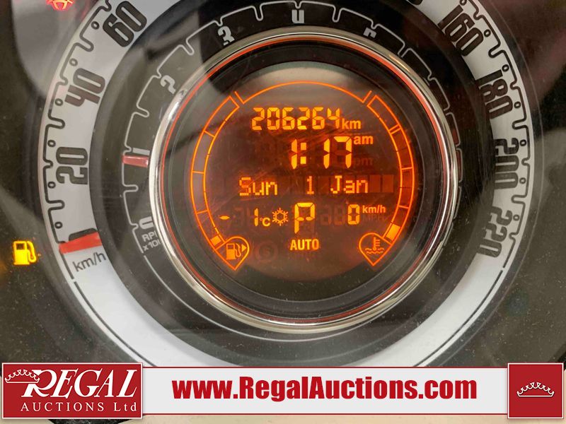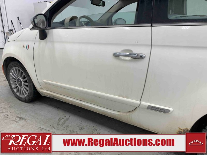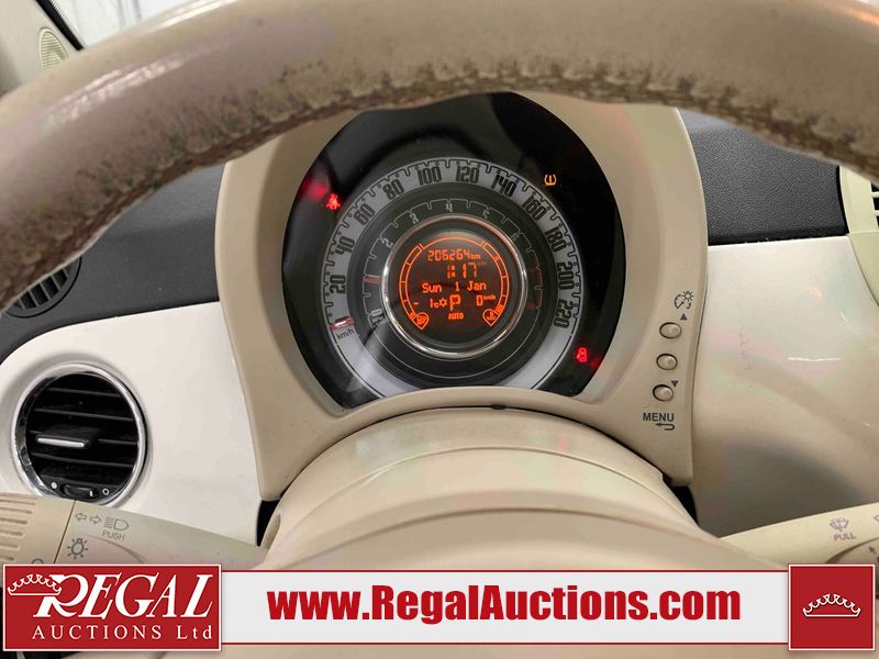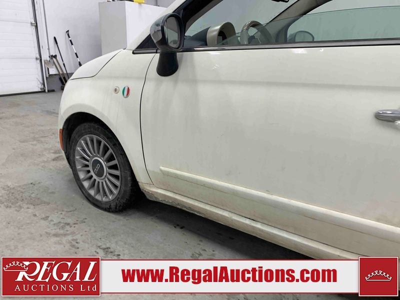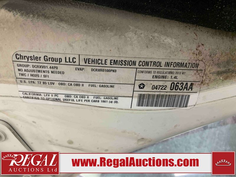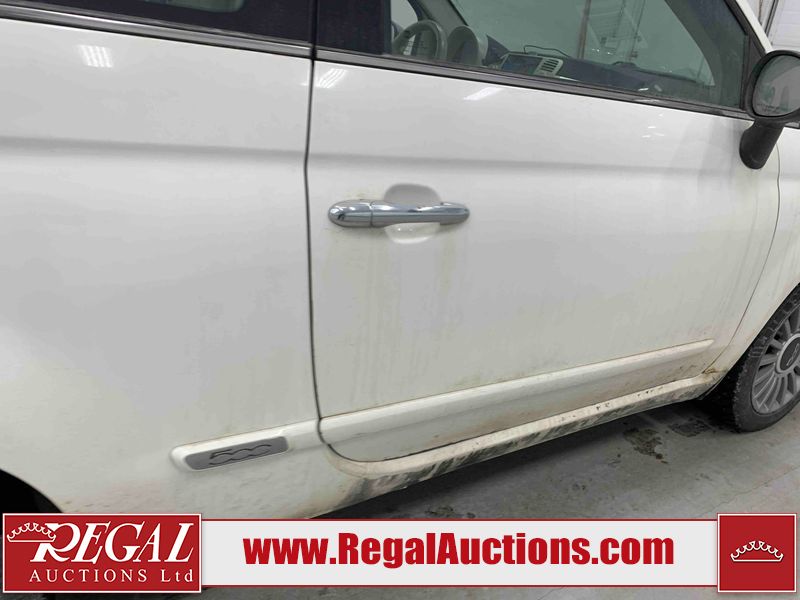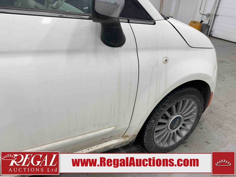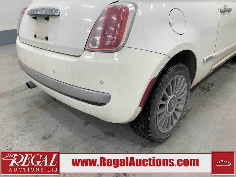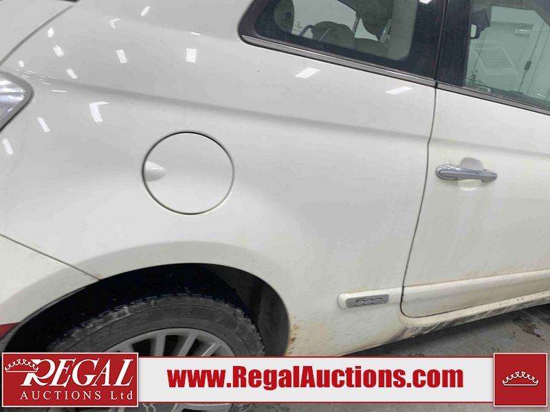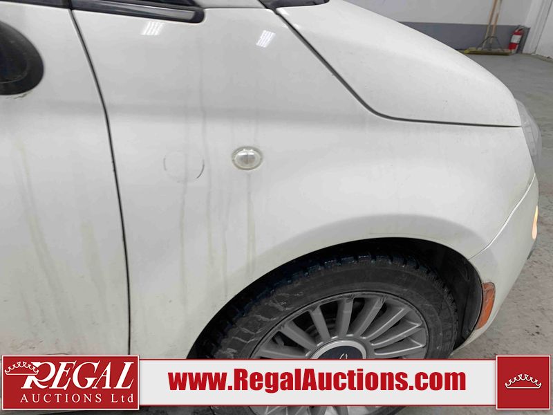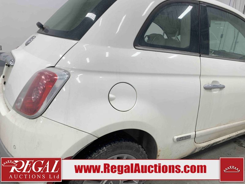 This 2013 FIAT 500 2D HATCHBACK is powered by a 1.4L 4-cylinder gasoline engine and an automatic transmission. The car has seats for 4 people. The mileage is average considering the car's age. The vehicle has high-value options including a sunroof, leather upholstery, power seats, and heated seats. The body looks to be in rough condition overall. There is severe hail on the hood, roof, left rear fender, trunk lid, and right rear fender. There is severe rust on the left rear fender. There is pronounced rust on the left front fender. There are chips on the front bumper, rear bumper, and right front door. There are scratches on the front bumper, hood, roof, left front fender, left front door, left rear fender, rear bumper, trunk lid, right rear fender, right front door, and right front fender. There is paint peeling on the left front fender and left front door. There is minor rust on the right rear fender. There are very minor chips in many areas around the body. The interior looks to be in good condition overall. The windshield is cracked. All of the tires have lots of tread remaining. This car is being sold by an automotive broker. The vehicle will be sold with the following declarations: Hail Damage (See Footnote 1). Footnotes: 1) This vehicle shows signs of damage from a hail storm. Hail damage is not always clearly visible in photographs. Regal Auctions Ltd. makes no guarantee or warranty, either express or implied, with respect to the data provided in this report. The information has been provided from the consignor and from sources generally believed to be reliable, however the accuracy of this information cannot be guaranteed by Regal Auctions.