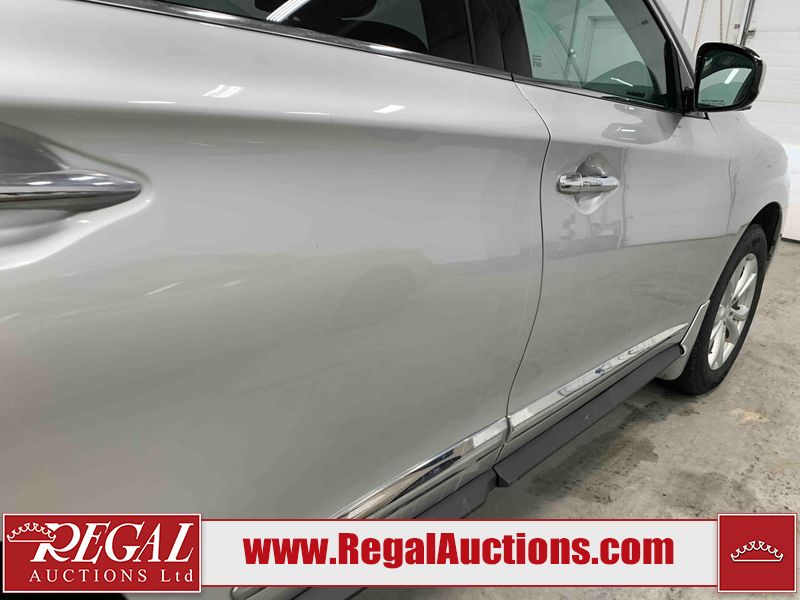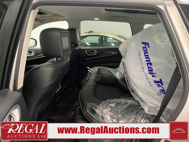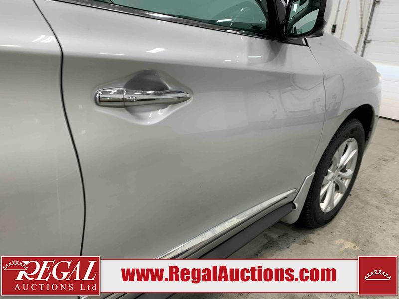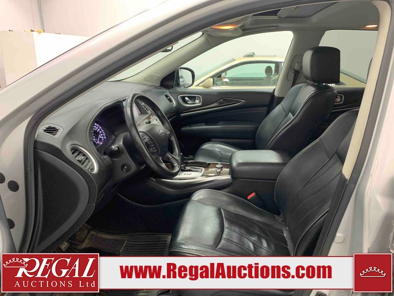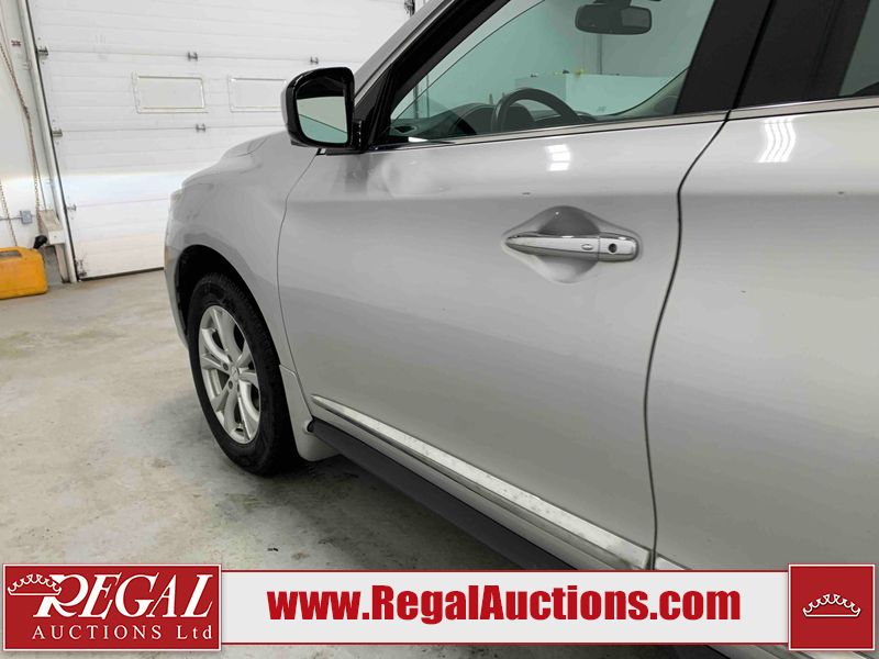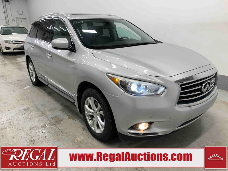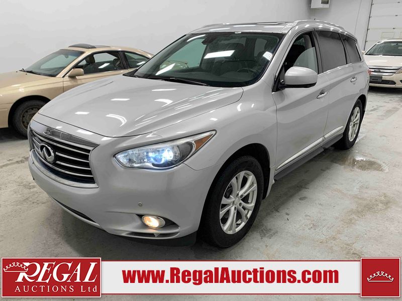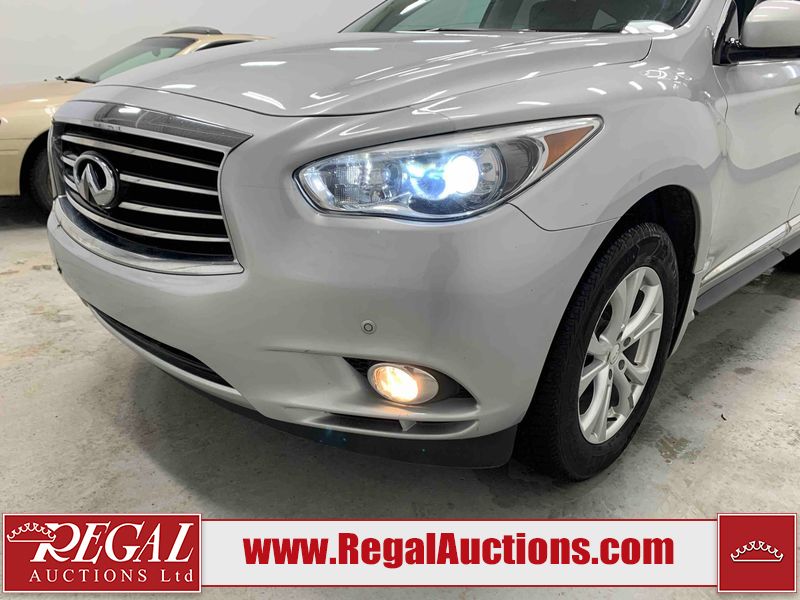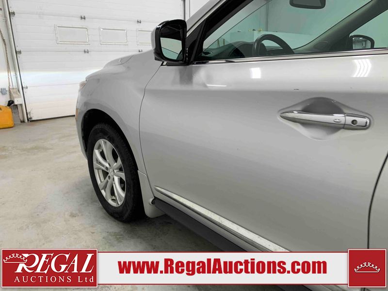 This 2013 INFINITI JX 4D SEDAN AWD is powered by a 3.5L 6 cylinder gasoline engine and an automatic transmission. It is equipped with four wheel drive. The car has seats for 5 people. The car has low mileage for its age. The vehicle has high value options including a sunroof, leather upholstery, power seats, navigation, a backup camera, and a power lift gate. The Check Engine and Stability Control lights are on. The body looks to be in rough condition overall. The front bumper is cracked. There is extensive hail on the hood, roof, left rear fender, and right rear fender. There are scratches on the front bumper, roof, left front fender, left front door, left rear door, left rear fender, rear bumper, trunk lid, right rear fender, right rear door, right front door, and right front fender. There are minor chips on the roof and rear bumper. There is rust on the roof. There is incidental dent damage on the left rear fender. There is incidental hail on the right rear door, right front door, and right front fender. There are very minor chips in many areas around the body. There are very minor scratches on the hood. The interior looks to be in good condition overall. The windshield is damaged. The front tires and the passenger side rear tire are all worn. The driver's side rear tire has lots of tread left. This car is being sold by an automotive broker. The vehicle will be sold with the following declarations: Hail Damage (See Footnote 1). Footnotes: 1) This vehicle shows signs of damage from a hail storm. Hail damage is not always clearly visible in photographs. Regal Auctions Ltd. makes no guarantee or warranty, either express or implied, with respect to the data provided in this report. The information has been provided from the consignor and from sources generally believed to be reliable, however the accuracy of this information cannot be guaranteed by Regal Auctions.