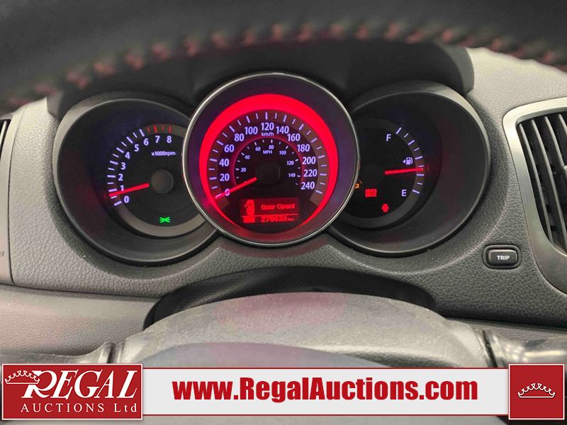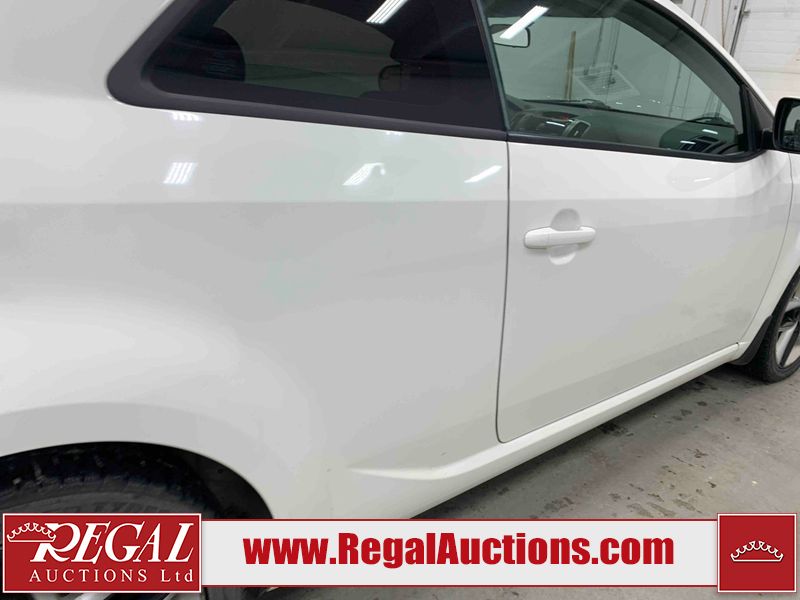 This 2013 KIA FORTE COUPE 2D COUPE is powered by a 2.4L 4-cylinder gasoline engine and a 6-speed manual transmission. The car has seats for 5 people. The car has high mileage for its age. The vehicle has high-value options including a sunroof, leather upholstery, heated seats, and a backup camera. The Check Engine light is on. The body looks to be in rough condition overall. There is very bad hail on the hood, roof, trunk lid, and right rear fender. There are chips on the front bumper, hood, roof, and rear bumper. There are incidental scratches on the front bumper, hood, roof, left front fender, left front door, left rear fender, rear bumper, trunk lid, right rear fender, right front door, and right front fender. There is rust on the hood and roof. There is minor hail on the right front door and right front fender. There are very minor chips in many areas around the body. The interior looks to be in good condition overall. The windshield is cracked. All of the tires have lots of tread remaining. This car is being sold by an automotive broker. The vehicle will be sold with the following declarations: Auctioneer Announcement "*SPEEDOMETER INOPERABLE* " and Hail Damage (See Footnote 1). Footnotes: 1) This vehicle shows signs of damage from a hail storm. Hail damage is not always clearly visible in photographs. Regal Auctions Ltd. makes no guarantee or warranty, either express or implied, with respect to the data provided in this report. The information has been provided from the consignor and from sources generally believed to be reliable, however the accuracy of this information cannot be guaranteed by Regal Auctions.