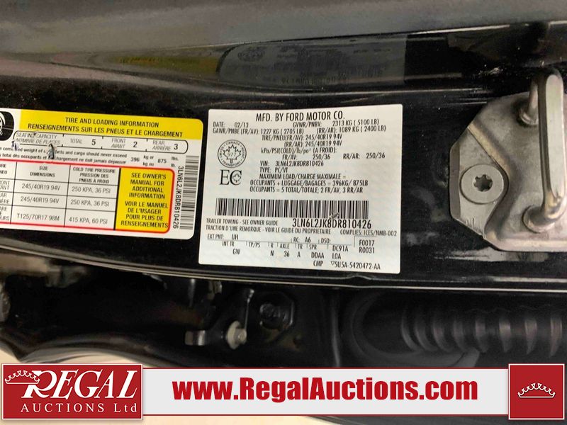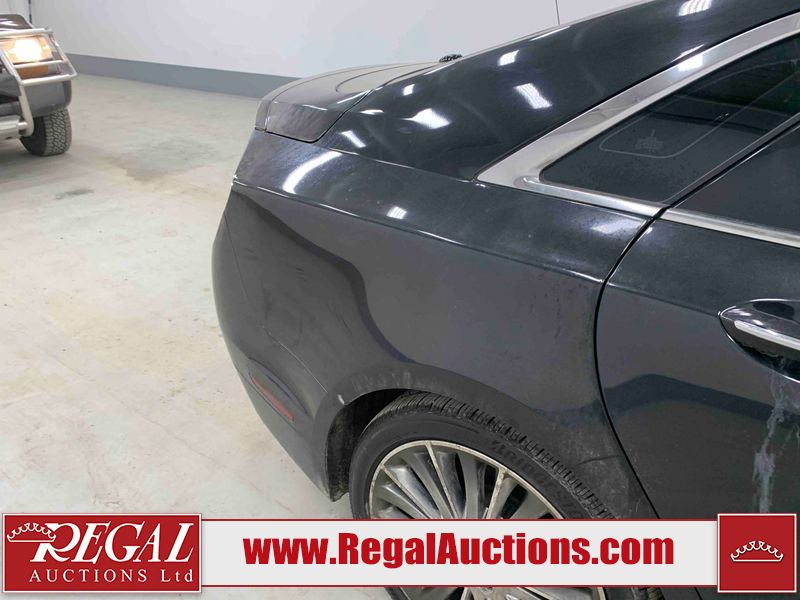 This 2013 LINCOLN MKZ 4D SEDAN AWD is powered by a 3.7 liter 6-cylinder gasoline engine and an automatic transmission. It is equipped with all-wheel drive. The car has seats for 5 people. The car has low mileage for its age. The vehicle has high-value options, including a sunroof, leather upholstery, power seats, heated seats, navigation, and a backup camera. The body looks to be in fair condition overall. The fascia is broken on the rear bumper. There are slight chips on the front bumper, hood, and rear bumper. There is incidental dent damage on the left front door, left rear door, right rear door, and right front door. There is incidental rust on the left rear fender and right rear fender. There is minor paint peeling on the left rear fender and right rear fender. There are scratches on the rear bumper. There are scratches in many areas around the body. There are chips in many areas around the body. The interior looks to be in good condition overall. The windshield is chipped. The tires are all worn. This car is being sold by a franchise dealership. The vehicle will be sold with the following declarations: Dealership Trade-In (See Footnote 1). Footnotes: 1) This vehicle is being sold on behalf of a franchise dealership. Franchise Dealerships are automotive sales companies who are directly connected to an automotive manufacturer like Ford, Tesla, Honda, BMW, or similar. Regal Auctions Ltd. makes no guarantee or warranty, either express or implied, with respect to the data provided in this report. The information has been provided from the consignor and from sources generally believed to be reliable, however the accuracy of this information cannot be guaranteed by Regal Auctions.