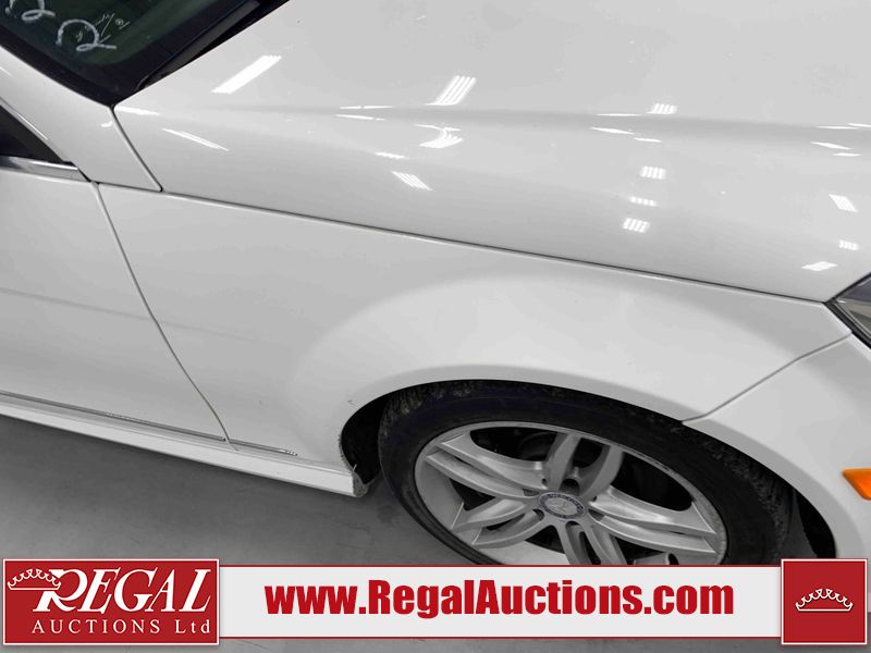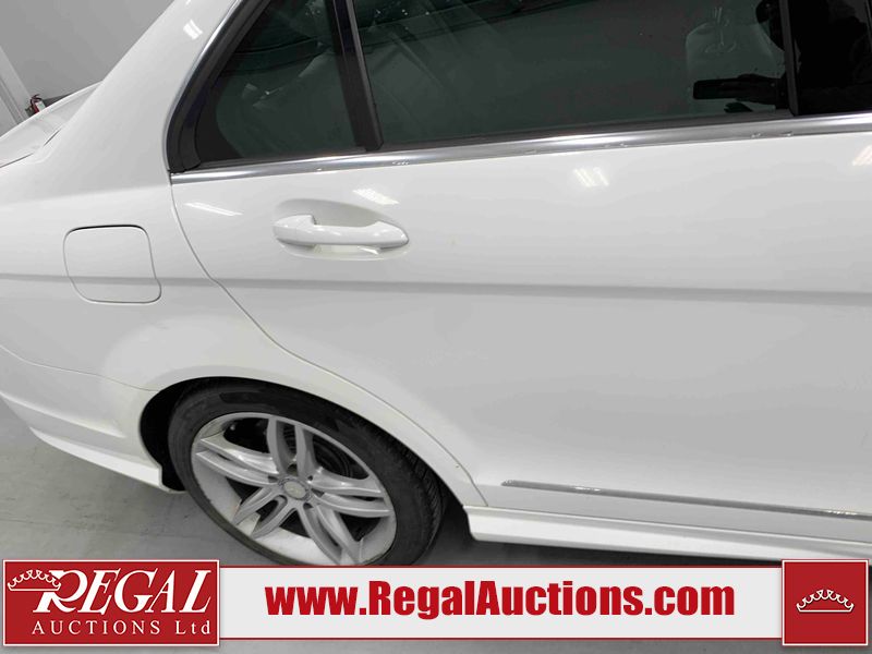 This 2013 MERCEDES-BENZ C-CLASS C300 4D SEDAN AWD 3.5L is powered by a 6 cylinder gasoline engine and an automatic transmission. It is equipped with four wheel drive. The car has seats for 5 people. The car has low mileage for its age. The vehicle has high value options including a sunroof, leather upholstery, power seats, and heated seats. The body looks to be in fair condition overall. The front bumper is cracked. There are chips on the front bumper and left rear door. There are slight scratches on the front bumper and rear bumper. There are very minor chips in many areas around the body. There are very minor scratches in many areas around the body. The interior looks to be in fair condition overall. The driver's seat is torn. The passenger seat is stained. The carpet is dirty. The windshield is chipped. The tires are all worn. The passenger side rear tire is nearly bald and should be replaced.