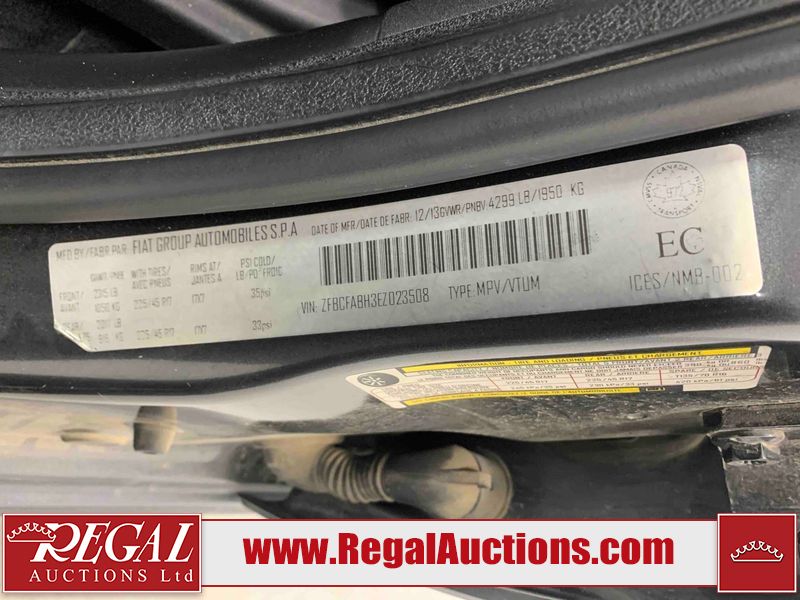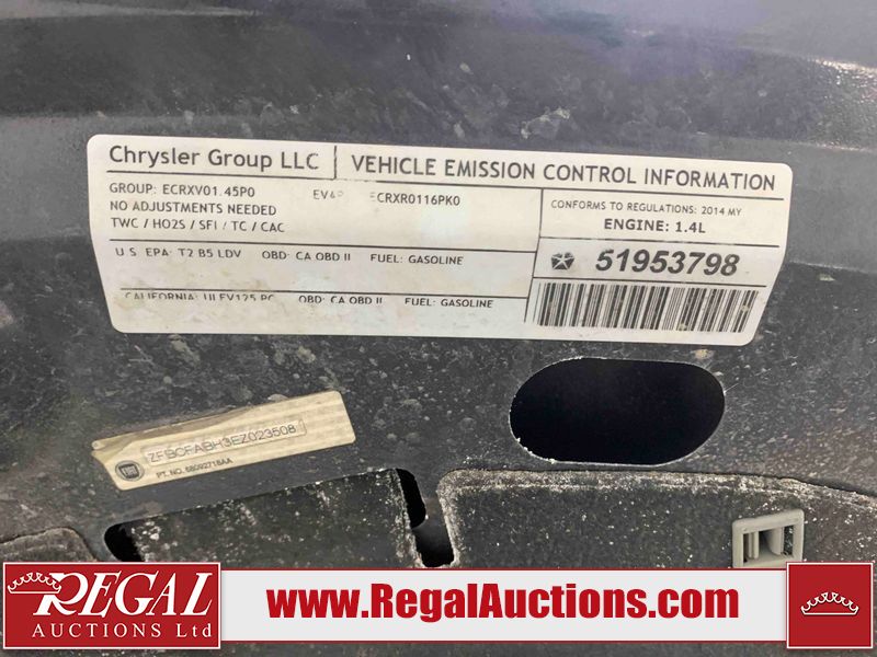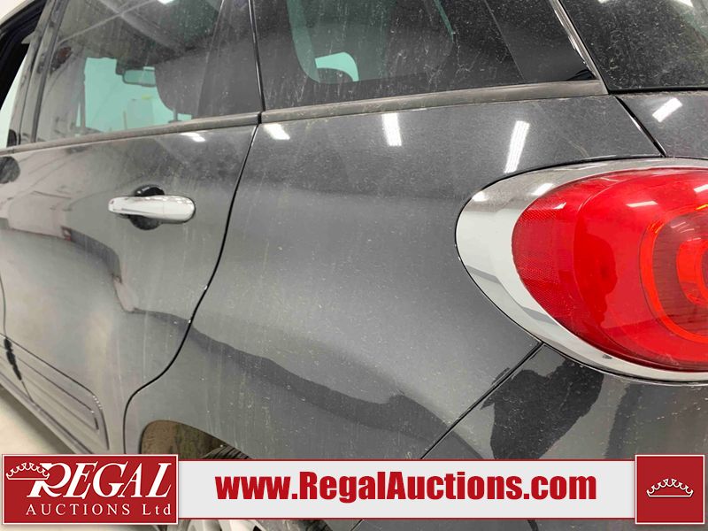 This 2014 FIAT 500L SPORT 5D HATCHBACK is powered by a turbocharged 1.4L 4-cylinder gasoline engine and an automatic transmission. The car has seats for 5 people. The car has low mileage for its age. The vehicle has high-value options including power seats, heated seats, and a backup camera. The body looks to be in good condition overall. There are incidental chips on the left front door. There are very minor chips in many areas around the body. There are very minor scratches in many areas around the body. The interior looks to be in fair condition overall. The dashboard and doors are worn. The driver's seat and passenger seat are stained. The windshield is chipped. All of the tires have lots of tread remaining. This car is being sold by an automotive broker. Regal Auctions Ltd. makes no guarantee or warranty, either express or implied, with respect to the data provided in this report. The information has been provided from the consignor and from sources generally believed to be reliable, however the accuracy of this information cannot be guaranteed by Regal Auctions.