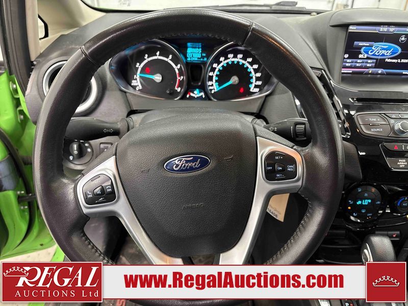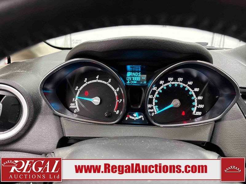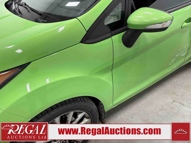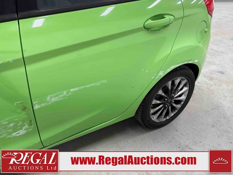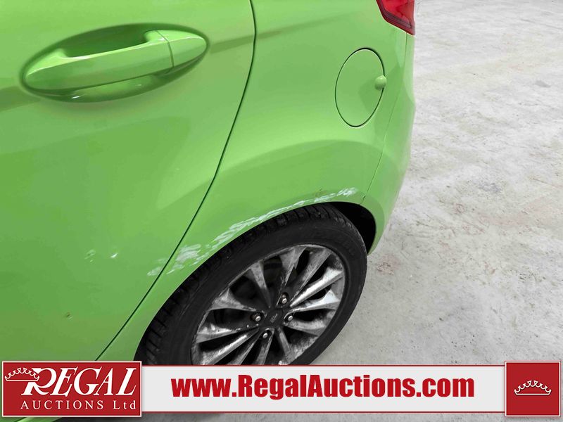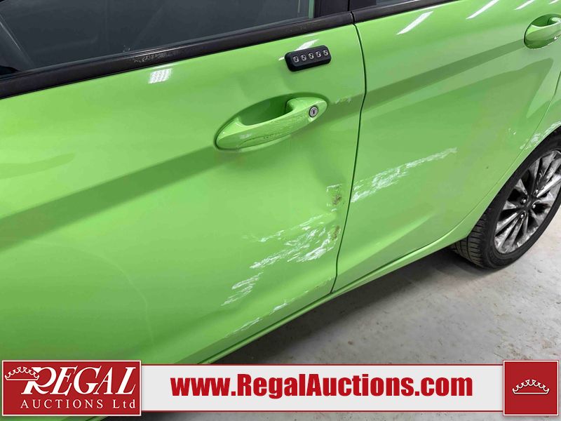 This 2014 FORD FIESTA SE 5D HATCHBACK is powered by a 1.6L 4 cylinder gasoline engine and an automatic transmission. The car has seats for 5 people. The car has low mileage for its age. The vehicle has high value options including a sunroof and heated seats. The body looks to be in rough condition overall. There is a fair amount of hail on the roof. The left front door has been repainted poorly. There are noteworthy scratches on the left front door. There is slight rust on the hood, left rear fender, and right rear fender. There is incidental hail on the hood. There is dent damage on the left front door. There are scratches on the left rear door, left rear fender, and right front door. There are chips on the rear bumper. There are very minor chips in many areas around the body. There are very minor scratches in many areas around the body. The interior looks to be in good condition overall. The windshield is cracked. All of the tires have lots of tread remaining. This car is being sold by a franchise dealership. The vehicle will be sold with the following declarations: Dealership Trade-In (See Footnote 1) and Hail Damage (See Footnote 2). Footnotes: 1) This vehicle is being sold on behalf of a franchise dealership. Franchise Dealerships are automotive sales companies who are directly connected to an automotive manufacturer like Ford, Tesla, Honda, BMW, or similar. 2) This vehicle shows signs of damage from a hail storm. Hail damage is not always clearly visible in photographs. Regal Auctions Ltd. makes no guarantee or warranty, either express or implied, with respect to the data provided in this report. The information has been provided from the consignor and from sources generally believed to be reliable, however the accuracy of this information cannot be guaranteed by Regal Auctions.