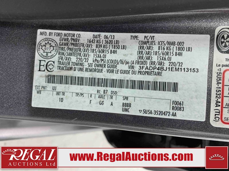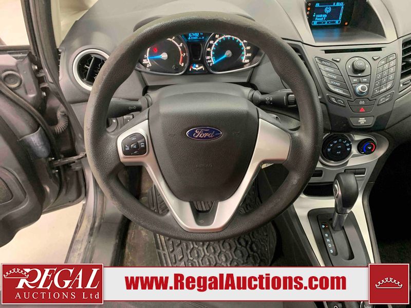 This 2014 FORD FIESTA SE 4D SEDAN FWD is powered by a 1.6L 4-cylinder gasoline engine and an automatic transmission. The car has seats for 5 people. The car has low mileage for its age. The body looks to be in fair condition overall. The left front fender has been repainted poorly. There is a fair amount of paint overspray on the rear bumper. There are incidental scratches on the front bumper, rear bumper, and right rear door. There is slight dent damage on the front bumper and right rear fender. There is rust on the hood and right front fender. There are very minor chips in many areas around the body. There are very minor scratches in many areas around the body. There is very minor dent damage in a few areas around the body. The interior looks to be in fair condition overall. There is some stains on the driver's seat and passenger seat. The windshield is cracked. The front tires are both worn. The rear tires both have lots of tread remaining. This car is being sold by an automotive broker. The vehicle will be sold with the following declarations: Claims Total $3000 - $4999 (See Footnote 1) and Out of Province - BC (See Footnote 2). Footnotes: 1) The vehicle's total recorded insurance claims history is between $3,000 - $4,999. This is the amount of money that was paid out by an insurance company for repairs to cover claims against the vehicle's insurance policy. This information is provided by CarFax. 2) The vehicle's last registered jurisdiction is British Columbia. The purchaser must have the vehicle undergo and pass an Out of Province inspection before it can be registered in Alberta. Regal Auctions Ltd. makes no guarantee or warranty, either express or implied, with respect to the data provided in this report. The information has been provided from the consignor and from sources generally believed to be reliable, however the accuracy of this information cannot be guaranteed by Regal Auctions.