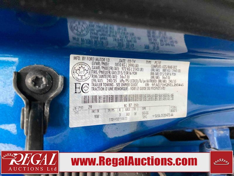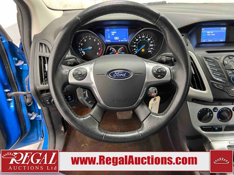 This 2014 FORD FOCUS SE 4D HATCHBACK is powered by a 4 cylinder gasoline engine and an automatic transmission. The car has seats for 5 people. The car has low mileage for its age. The Tire Pressure light is on. The body looks to be in good condition overall. There is dent damage on the right front door. There are very minor chips in many areas around the body. There are very minor scratches in many areas around the body. The interior looks to be in good condition overall. The windshield looks to be in good condition. All of the tires have lots of tread remaining. This car is being sold by an automotive broker. The vehicle will be sold with the following declarations: Out of Province - BC (See Footnote 1) Out of Province override (see footnote 2) and Claims Total $15,000 - $19,999 (See Footnote 3). Footnotes: 1) The vehicle's last registered jurisdiction is British Columbia. The purchaser must have the vehicle undergo and pass an Out of Province inspection before it can be registered in Alberta. 2) The vehicle has passed an Alberta Out of province inspection. 3) The vehicle's total recorded insurance claims history is between $15,000 - $19,999. This is the amount of money that was paid out by an insurance company for repairs to cover claims against the vehicle's insurance policy. This information is provided by CarFax. Regal Auctions Ltd. makes no guarantee or warranty, either express or implied, with respect to the data provided in this report. The information has been provided from the consignor and from sources generally believed to be reliable, however the accuracy of this information cannot be guaranteed by Regal Auctions.