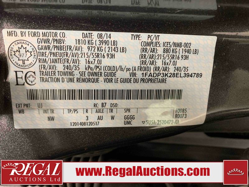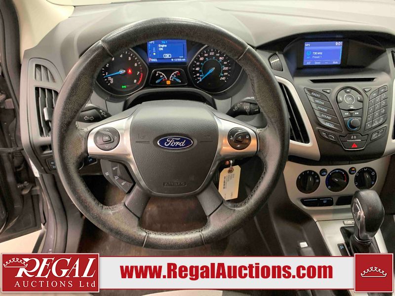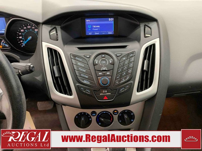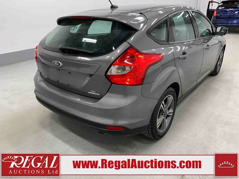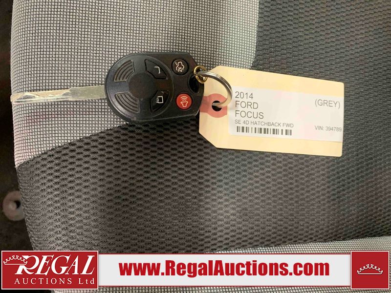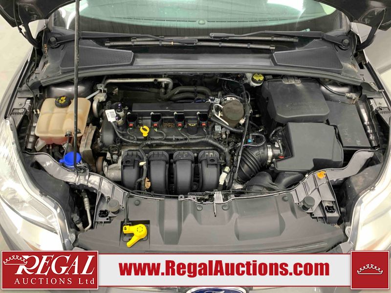 This 2014 FORD FOCUS SE 4D HATCHBACK FWD is powered by a 2.0L 4-cylinder gasoline engine and an automatic transmission. The car has seats for 5 people. The car has low mileage for its age. The vehicle has high-value options including heated seats. The body looks to be in fair condition overall. There are slight chips on the front bumper and hood. There are slight scratches on the front bumper, left rear door, rear bumper, and right front fender. There is slight dent damage on the rear bumper and right rear door. There is dent damage on the hood. There are very minor scratches in many areas around the body. There are very minor chips in many areas around the body. The interior looks to be in good condition overall. The windshield looks to be in good condition. The front tires are both worn. The rear tires both have lots of tread remaining. This car is being sold by an automotive broker. The vehicle will be sold with the following declarations: Claims Total $3000 - $4999 (See Footnote 1), Out of Province - BC (See Footnote 2), and Out of Province - AB OVERRIDE (See Footnote 3). Footnotes: 1) The vehicle's total recorded insurance claims history is between $3,000 - $4,999. This is the amount of money that was paid out by an insurance company for repairs to cover claims against the vehicle's insurance policy. This information is provided by CarFax. 2) The vehicle's last registered jurisdiction is British Columbia. The purchaser must have the vehicle undergo and pass an Out of Province inspection before it can be registered in Alberta. 3) Out of province inspection for registering the vehicle in Alberta has been completed. Regal Auctions Ltd. makes no guarantee or warranty, either express or implied, with respect to the data provided in this report. The information has been provided from the consignor and from sources generally believed to be reliable, however the accuracy of this information cannot be guaranteed by Regal Auctions.