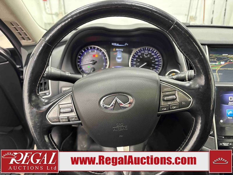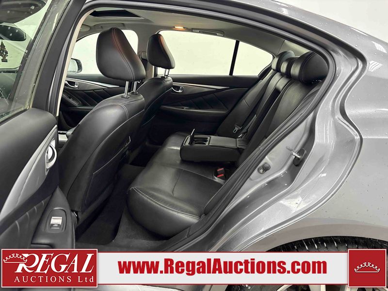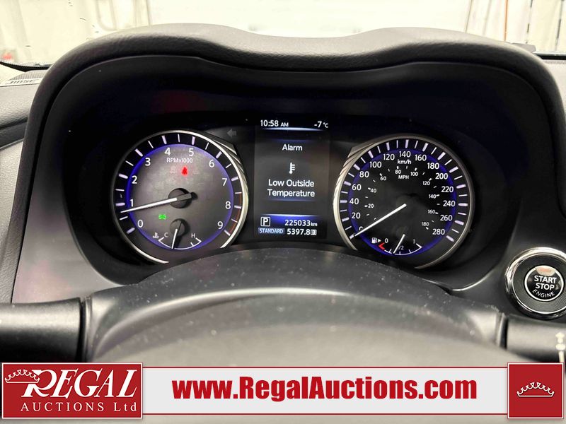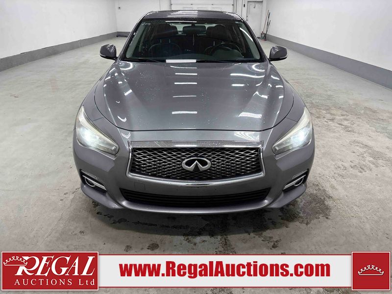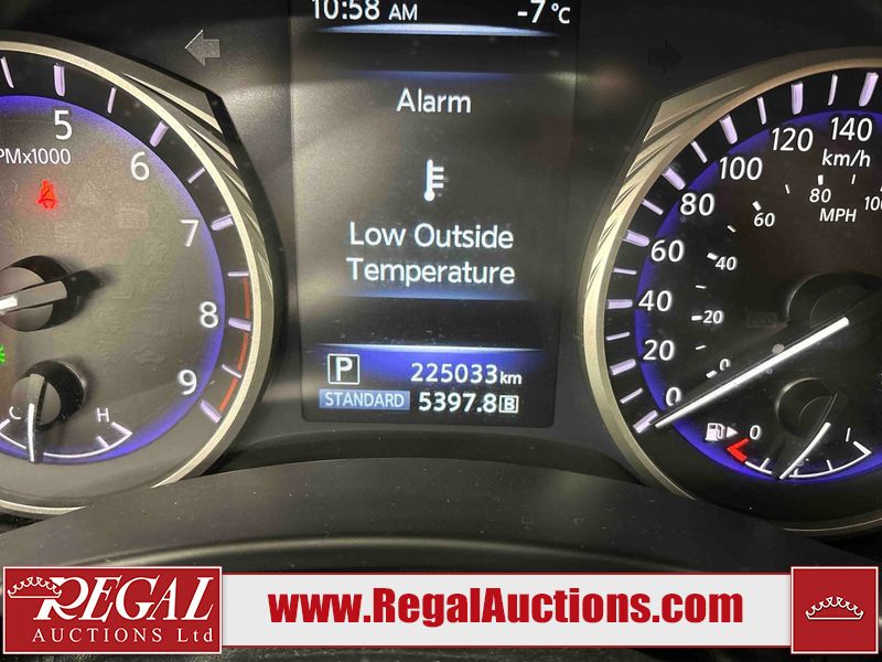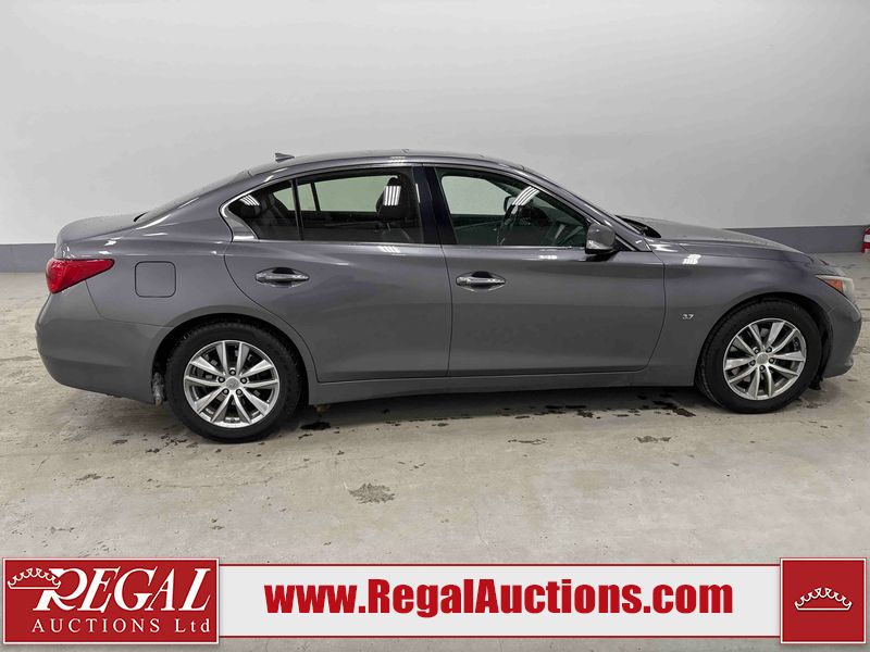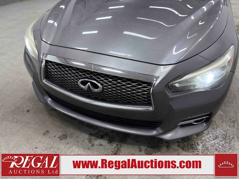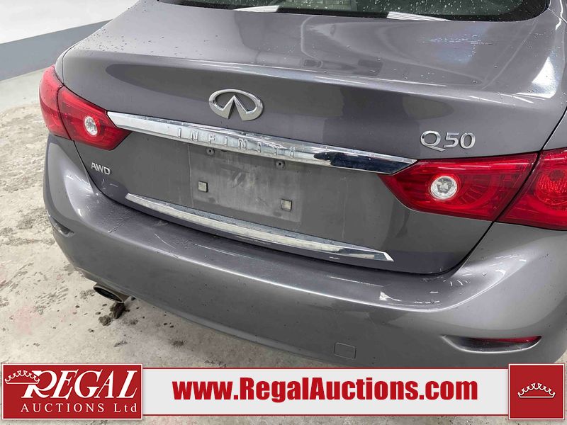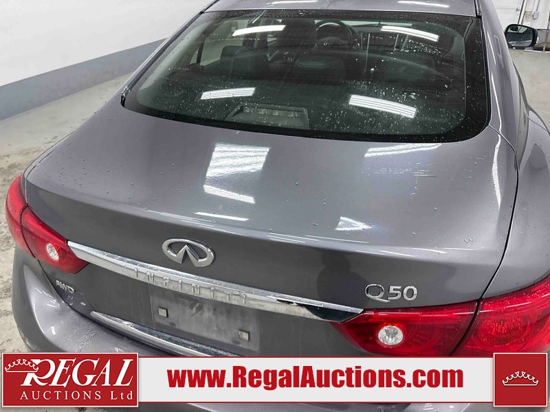 This 2014 INFINITI Q50 4D SEDAN AWD is powered by a 3.7 liter 6 cylinder gasoline engine and an automatic transmission. It is equipped with four wheel drive. The car has seats for 5 people. The mileage is average considering the car's age. The vehicle has high value options including a sunroof, leather upholstery, power seats, heated seats, navigation, and a backup camera. The body looks to be in fair condition overall. There is a fair amount of hail on the hood and roof. There is hail on the trunk lid and right rear fender. There are chips in many areas around the body. There are scratches in many areas around the body. The interior looks to be in good condition overall. The windshield looks to be in good condition. All of the tires have lots of tread remaining. This car is being sold by an automotive broker. The vehicle will be sold with the following declarations: Hail Damage (See Footnote 1). Footnotes: 1) This vehicle shows signs of damage from a hail storm. Hail damage is not always clearly visible in photographs. Regal Auctions Ltd. makes no guarantee or warranty, either express or implied, with respect to the data provided in this report. The information has been provided from the consignor and from sources generally believed to be reliable, however the accuracy of this information cannot be guaranteed by Regal Auctions.