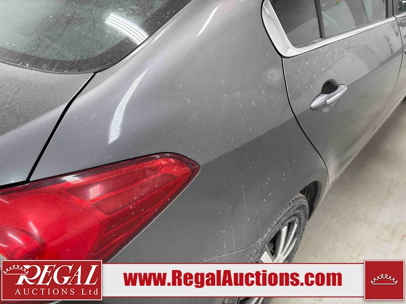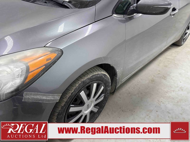 This 2014 KIA FORTE SX GDI 4D SEDAN FWD 2.0L is powered by a 2.0 liter 4-cylinder gasoline engine and an automatic transmission. The car has seats for 5 people. The car has high mileage for its age. The vehicle has high-value options, including leather upholstery, power seats, heated seats, and navigation. The vehicle has some mechanical problems. * ENGINE TICK * (See Footnote 1) The body looks to be in fair condition overall. The right rear fender has been repainted poorly. The front bumper is broken. There are scratches on the left rear door. There are chips in many areas around the body. There are scratches in many areas around the body. There is dent damage in a few areas around the body. The interior looks to be in good condition overall. The windshield is chipped. All of the tires are nearly bald and should be replaced. This car is being sold by a private individual. The vehicle will be sold with the following declarations: Mechanical Problems (See Footnote 1). Footnotes: 1) We've identified some mechanical problems with the vehicle. However, the vehicle has not undergone a mechanical inspection and our findings are not to be considered a complete evaluation of the vehicle's mechanical condition. Review our Buyer Protection Policy to see how Regal Auctions protects you from undisclosed mechanical problems. Regal Auctions Ltd. makes no guarantee or warranty, either express or implied, with respect to the data provided in this report. The information has been provided from the consignor and from sources generally believed to be reliable, however the accuracy of this information cannot be guaranteed by Regal Auctions.