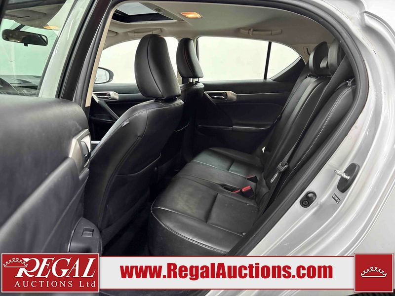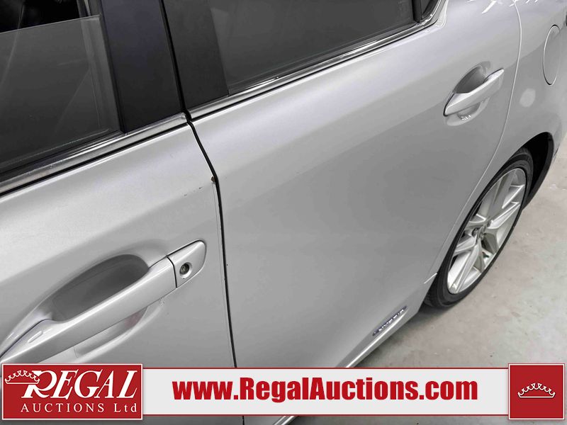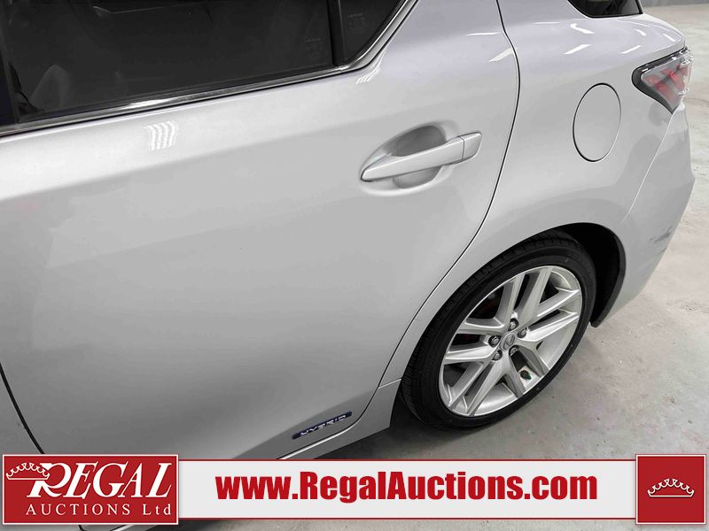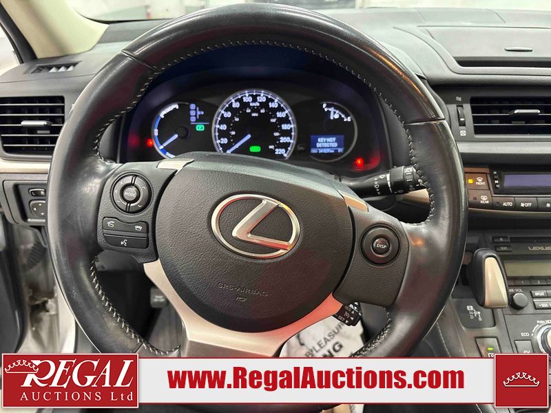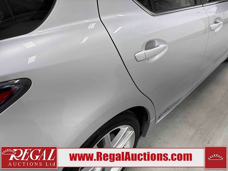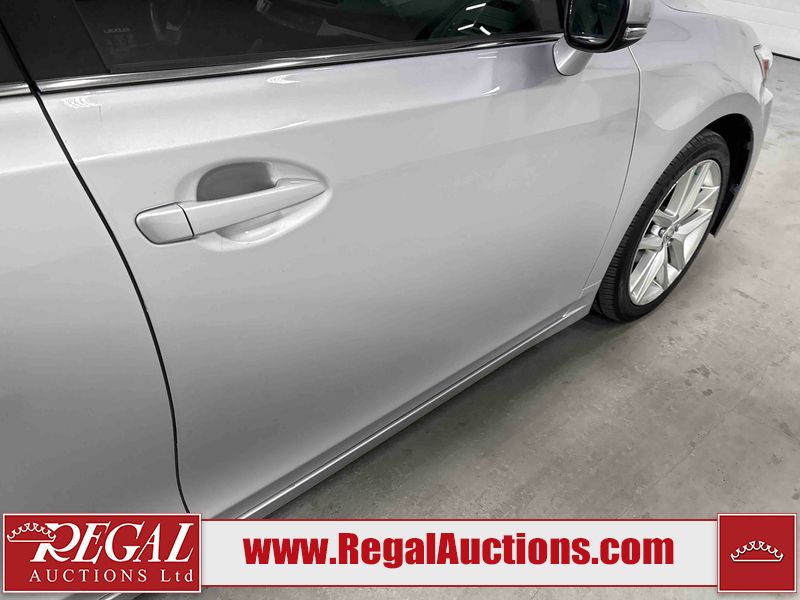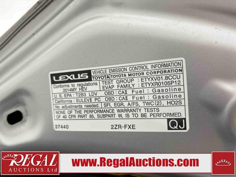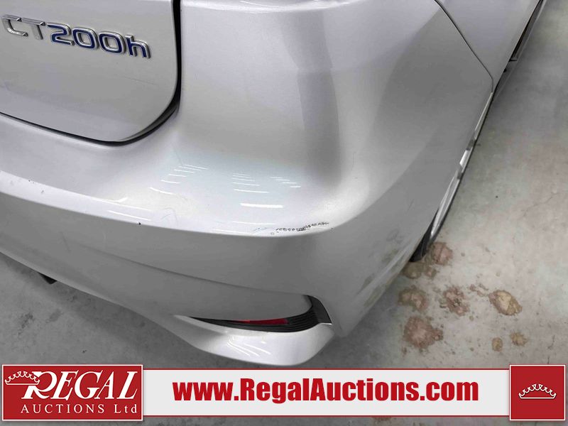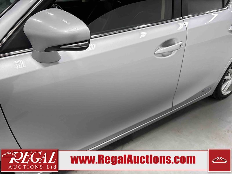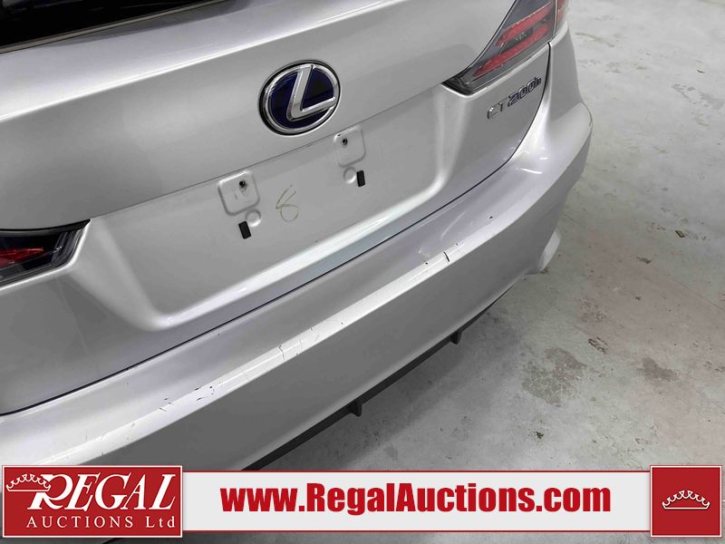 This 2014 LEXUS CT 200H 4D HATCHBACK FWD is powered by a 1.8L 4-cylinder hybrid engine and an automatic transmission. The car has seats for 5 people. The car has high mileage for its age. The vehicle has high-value options including a sunroof, leather upholstery, power seats, and heated seats. The Check Engine light is on. The body looks to be in fair condition overall. The front bumper and rear bumper are cracked. The roof is broken. There are scratches on the front bumper, left front fender, left front door, left rear door, rear bumper, and right rear door. There are slight chips on the front bumper. There are very minor chips in many areas around the body. There are very minor scratches in many areas around the body. There is very minor dent damage on the right front fender. The interior looks to be in good condition overall. The windshield is cracked. All of the tires have lots of tread remaining. This car is being sold by an automotive broker. Footnotes: Regal Auctions Ltd. makes no guarantee or warranty, either express or implied, with respect to the data provided in this report. The information has been provided from the consignor and from sources generally believed to be reliable, however the accuracy of this information cannot be guaranteed by Regal Auctions.