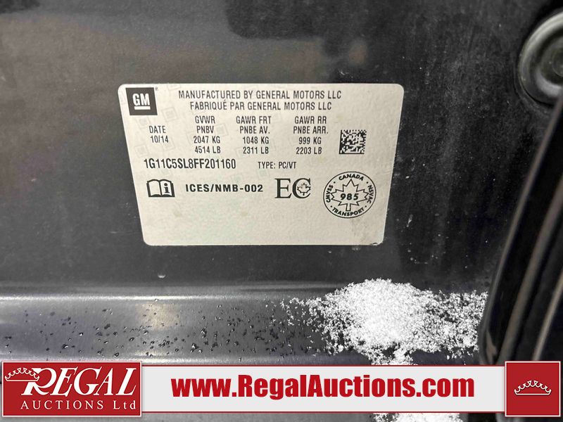 This 2015 CHEVROLET MALIBU 4D SEDAN is powered by a 2.5 liter 4 cylinder gasoline engine and an automatic transmission. The car has seats for 5 people. The car has high mileage for its age. The vehicle has high value options including a backup camera. The body looks to be in fair condition overall. There is moderate rust on the roof and right rear fender. The right rear fender has been repainted poorly. The front bumper is broken. There is rust on the left rear fender and right front door. There are scratches on the right rear fender and right rear door. There is minor dent damage on the right rear door. There are chips in many areas around the body. There are scratches in many areas around the body. There is dent damage in a few areas around the body. The interior looks to be in good condition overall. The windshield is chipped. All of the tires have lots of tread remaining. This car is being sold by an automotive broker. Regal Auctions Ltd. makes no guarantee or warranty, either express or implied, with respect to the data provided in this report. The information has been provided from the consignor and from sources generally believed to be reliable, however the accuracy of this information cannot be guaranteed by Regal Auctions.