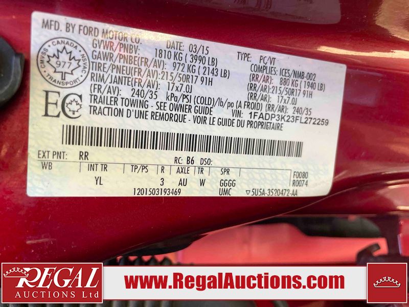 This 2015 FORD FOCUS 4D HATCHBACK FWD 2.0L is powered by a 2.0L 4-cylinder gasoline engine and an automatic transmission. The car has seats for 5 people. The mileage is average considering the car's age. The vehicle has high-value options including heated seats. The vehicle has some mechanical problems. The engine doesn't start and the vehicle is not drivable. It will have to be towed. The engine will not start. (See Footnote 1) The body looks to be in fair condition overall. There is noteworthy paint peeling on the trunk lid. There are slight scratches on the front bumper, hood, rear bumper, and right rear fender. There are minimal chips on the hood. There is minor paint peeling on the left front fender. There is minor dent damage on the left front door, left rear door, and right rear fender. There is slight rust on the trunk lid and right rear door. There are very minor chips in many areas around the body. There are very minor scratches in many areas around the body. There is very minor dent damage on the trunk lid. The interior looks to be in fair condition overall. There are a fair amount of cigarette burns on the driver's seat. There are obvious stained on the passenger seat and rear seats. The doors are worn. The roofliner is dirty. The windshield is chipped. All of the tires have lots of tread remaining. This car is being sold by a franchise dealership. The vehicle will be sold with the following declarations: Dealership Trade-In (See Footnote 2) and Claims Total $1000 - $2999 (See Footnote 3). Footnotes: 1) We've identified some mechanical problems with the vehicle. However, the vehicle has not undergone a mechanical inspection and our findings are not to be considered a complete evaluation of the vehicle's mechanical condition. Review our Buyer Protection Policy to see how Regal Auctions protects you from undisclosed mechanical problems. 2) This vehicle is being sold on behalf of a franchise dealership. Franchise Dealerships are automotive sales companies who are directly connected to an automotive manufacturer like Ford, Tesla, Honda, BMW, or similar. 3) The vehicle's total recorded insurance claims history is between $1,000 - $2,999. This is the amount of money that was paid out by an insurance company for repairs to cover claims against the vehicle's insurance policy. This information is provided by CarFax. Regal Auctions Ltd. makes no guarantee or warranty, either express or implied, with respect to the data provided in this report. The information has been provided from the consignor and from sources generally believed to be reliable, however the accuracy of this information cannot be guaranteed by Regal Auctions.