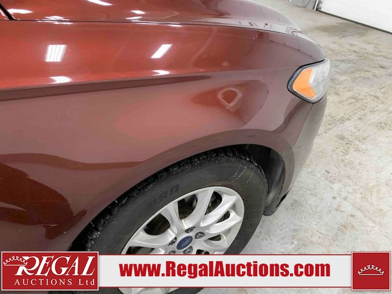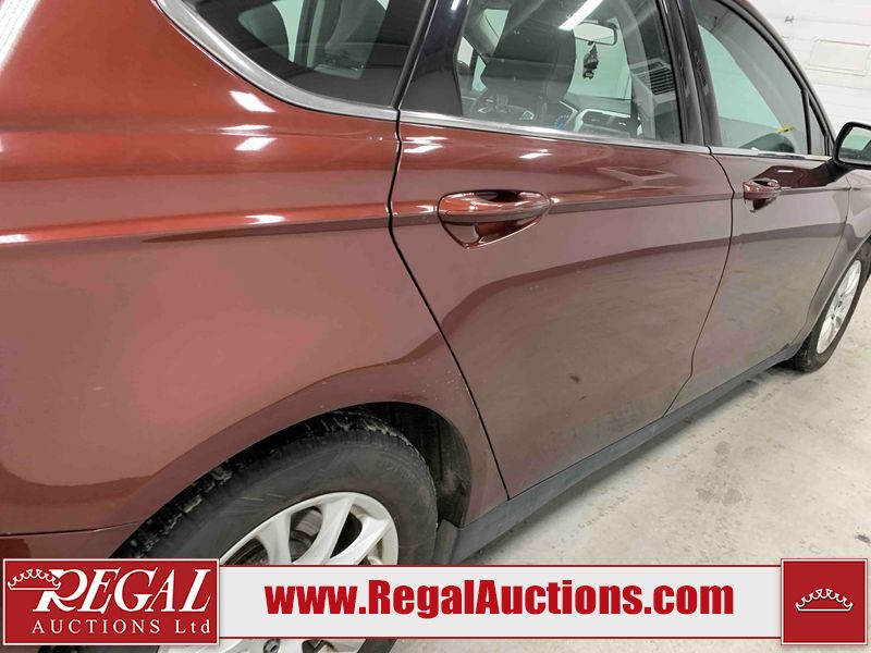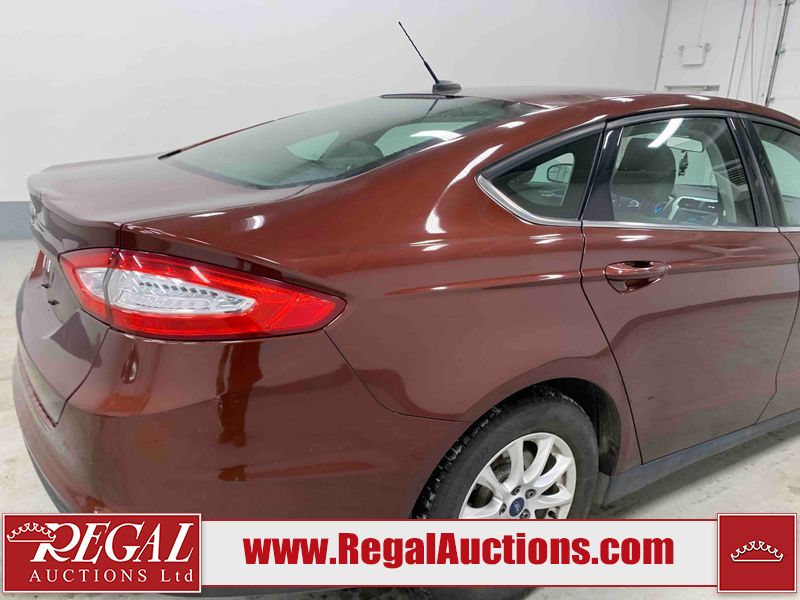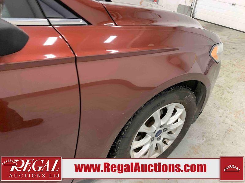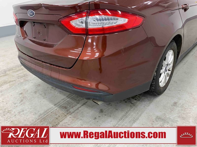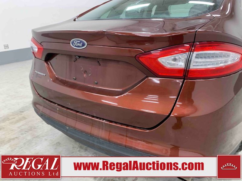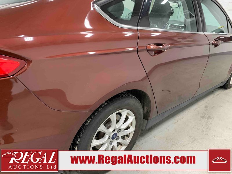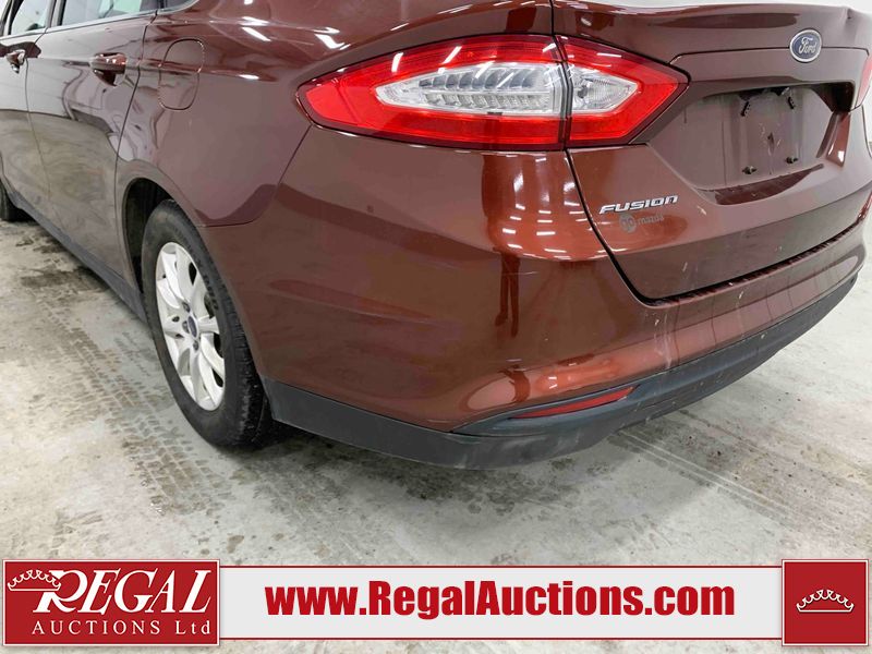 This 2015 FORD FUSION 4D SEDAN is powered by a 2.5L 4-cylinder gasoline engine and an automatic transmission. The car has seats for 5 people. The car has low mileage for its age. The vehicle has high-value options including a backup camera. The body looks to be in rough condition overall. The front bumper is cracked. There are slight chips on the front bumper and rear bumper. There are slight scratches on the front bumper, hood, roof, left front fender, left front door, left rear door, rear bumper, trunk lid, right rear fender, right rear door, and right front fender. There is dent damage on the trunk lid, right rear fender, right rear door, and right front door. There are very minor chips in many areas around the body. There are very minor scratches in a few areas around the body. The interior looks to be in fair condition overall. There are obvious stains on the driver's seat, passenger seat, and rear seats. The doors are dirty. The roofliner is dirty. The windshield is damaged. All of the tires have lots of tread remaining. This car is being sold by an automotive broker. Regal Auctions Ltd. makes no guarantee or warranty, either express or implied, with respect to the data provided in this report. The information has been provided from the consignor and from sources generally believed to be reliable, however the accuracy of this information cannot be guaranteed by Regal Auctions.