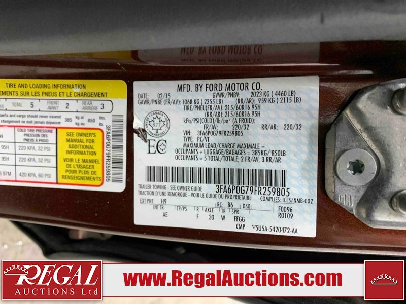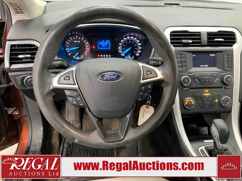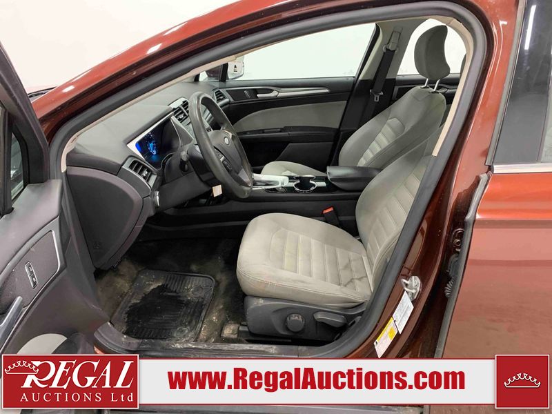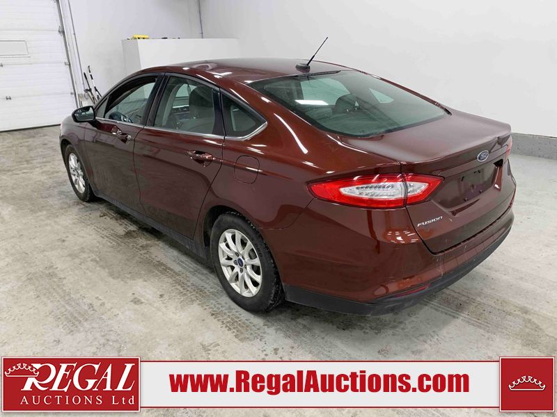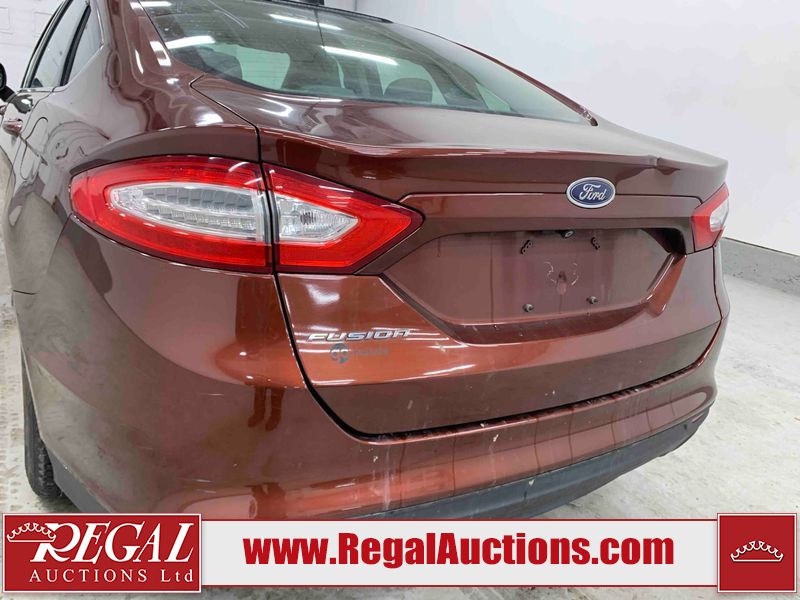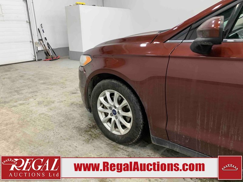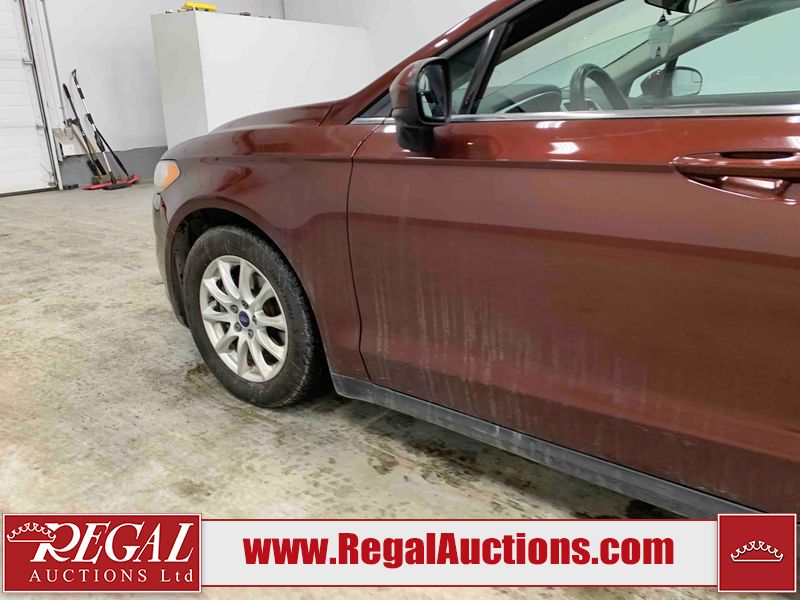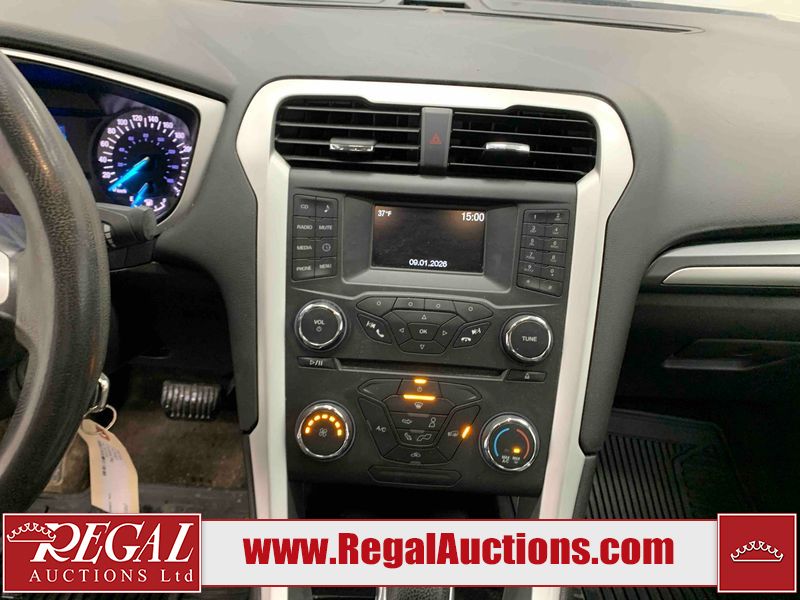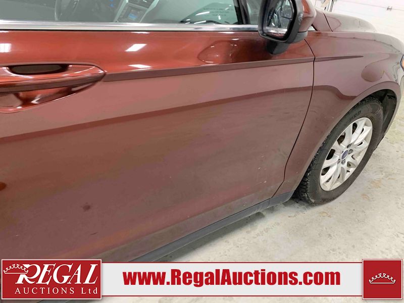 This 2015 FORD FUSION 4D SEDAN is powered by a 2.5L 4-cylinder gasoline engine and an automatic transmission. The car has seats for 5 people. The car has low mileage for its age. The vehicle has high-value options including a backup camera. The body looks to be in rough condition overall. The front bumper is cracked. There are slight chips on the front bumper and rear bumper. There are slight scratches on the front bumper, hood, roof, left front fender, left front door, left rear door, rear bumper, trunk lid, right rear fender, right rear door, and right front fender. There is dent damage on the trunk lid, right rear fender, right rear door, and right front door. There are very minor chips in many areas around the body. There are very minor scratches in a few areas around the body. The interior looks to be in fair condition overall. There are obvious stains on the driver's seat, passenger seat, and rear seats. The doors are dirty. The roofliner is dirty. The windshield is damaged. All of the tires have lots of tread remaining. This car is being sold by an automotive broker. Regal Auctions Ltd. makes no guarantee or warranty, either express or implied, with respect to the data provided in this report. The information has been provided from the consignor and from sources generally believed to be reliable, however the accuracy of this information cannot be guaranteed by Regal Auctions.