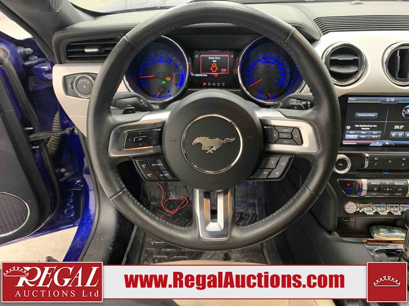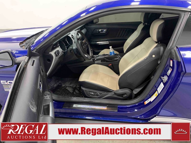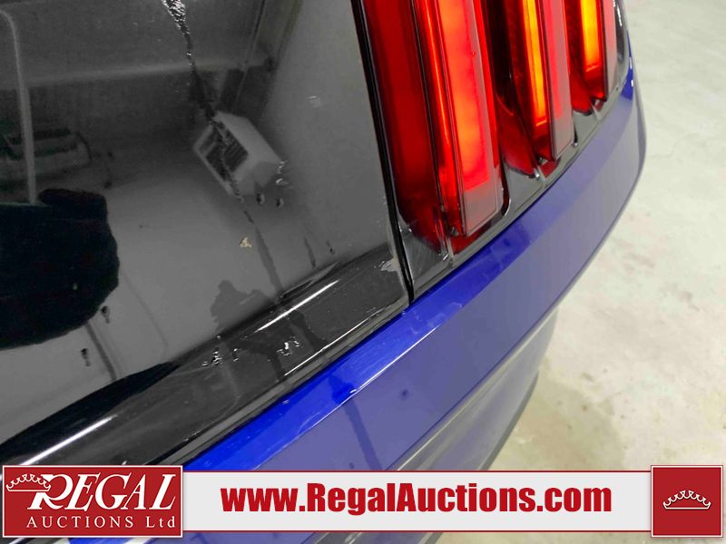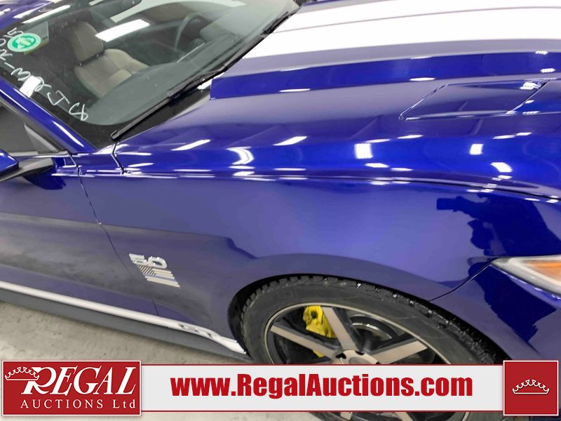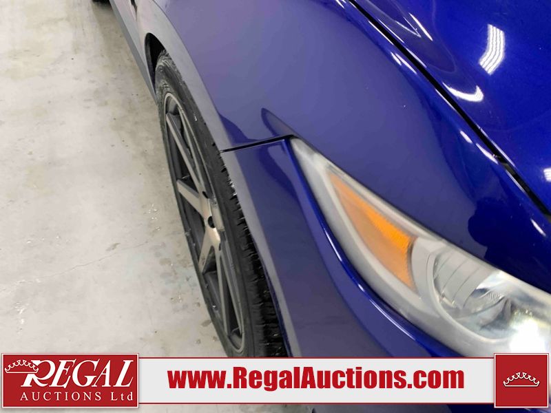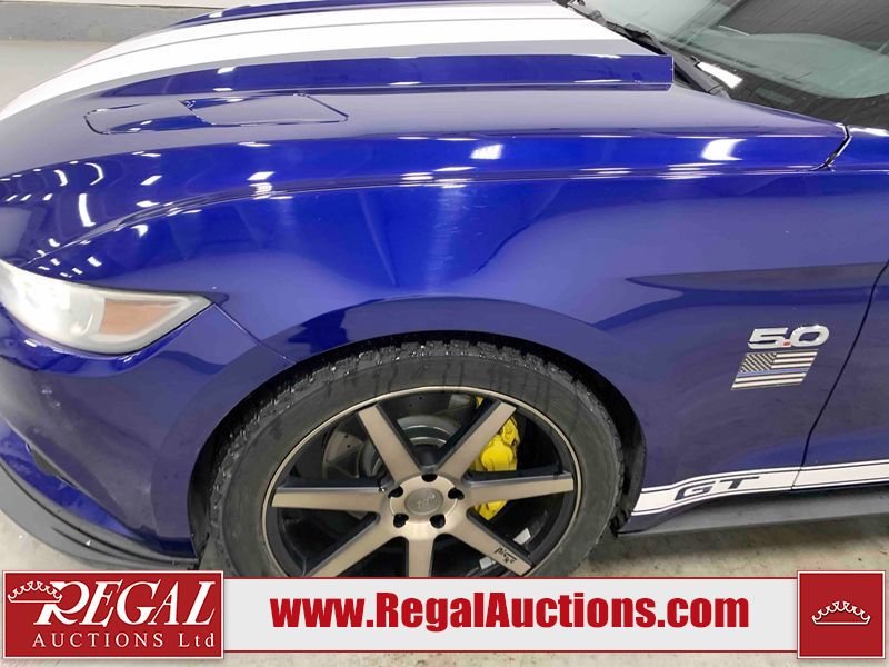 This 2015 FORD MUSTANG GT 2D COUPE RWD 5.0L is powered by a 8 cylinder gasoline engine and an automatic transmission. The car has seats for 4 people. The car has low mileage for its age. The vehicle has high value options including leather upholstery, power seats, heated seats, navigation, and a backup camera. The Check Engine light is on. Aftermarket air intake has been installed. The body looks to be in fair condition overall. There is conspicuous paint peeling on the hood. There are minor chips on the front bumper, hood, left front fender, left rear fender, rear bumper, right rear fender, right front door, and right front fender. There are minimal scratches on the left front door. There is paint peeling on the trunk lid. There are very minor scratches in many areas around the body. There are very minor chips in some areas around the body. The interior looks to be in good condition overall. There are miscellaneous wires coming out of the dash. The carpet is dirty. The windshield is chipped. All of the tires have lots of tread remaining. Aftermarket alloy rims with tires up and mounted, the factory are missing.