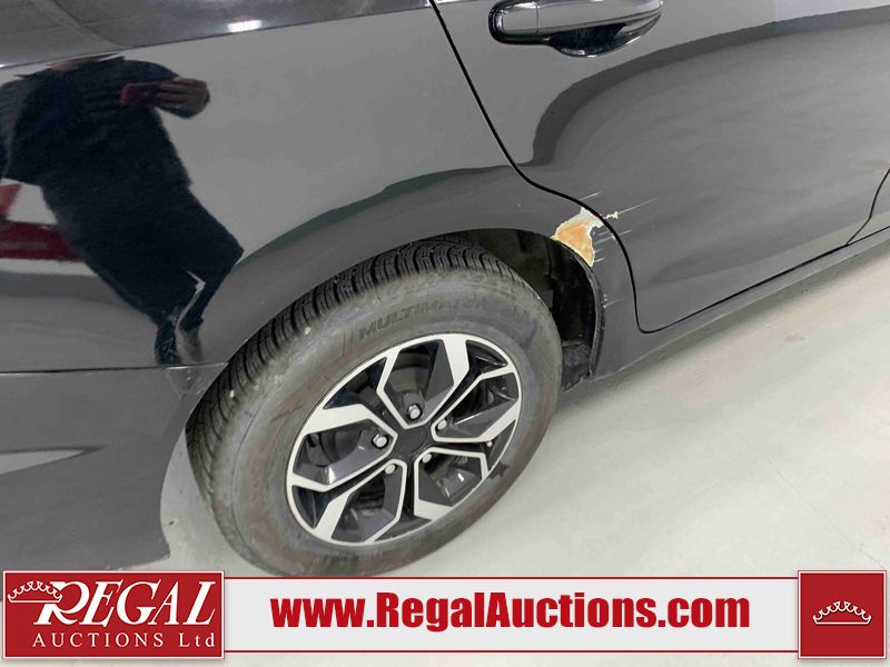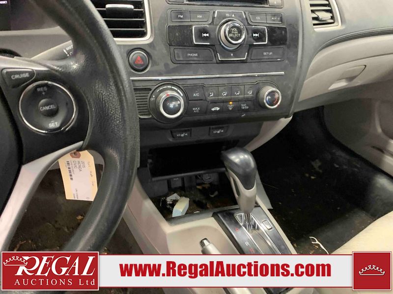 This 2015 HONDA CIVIC LX 4D SEDAN FWD 1.8L is powered by a 4 cylinder gasoline engine and an automatic transmission. The car has seats for 5 people. The car has low mileage for its age. The vehicle has high value options including heated seats and a backup camera. The body looks to be in rough condition overall. The hood, left front door, and right rear fender have been repainted poorly. The rear bumper is cracked. There is extensive paint peeling on the right rear fender. There is moderate rust on the hood and right rear fender. There are some scratches on the trunk lid and right rear door. There is moderate dent damage on the right rear fender. There is a fair amount of paint peeling on the right rear door. The front bumper is misaligned. There are chips on the front bumper, grille, hood, roof, left front fender, left front door, left rear door, left rear fender, rear bumper, right rear fender, right rear door, right front door, and right front fender. There are minimal scratches on the front bumper, hood, roof, left front fender, left front door, left rear door, left rear fender, rear bumper, right rear fender, right front door, and right front fender. There is dent damage on the left front door, left rear door, left rear fender, right rear door, and right front fender. There is minor rust on the left front door, left rear door, left rear fender, and right rear door. There are very minor chips on the trunk lid. There is very minor dent damage on the trunk lid. The headlight lenses are hazy. The interior looks to be in fair condition overall. The driver's seat, passenger seat, rear seats, and doors are stained. The carpet is dirty. The roofliner is dirty. The windshield is chipped. All of the tires have lots of tread remaining. Aftermarket alloy wheels have been mounted, the factory alloys are missing.