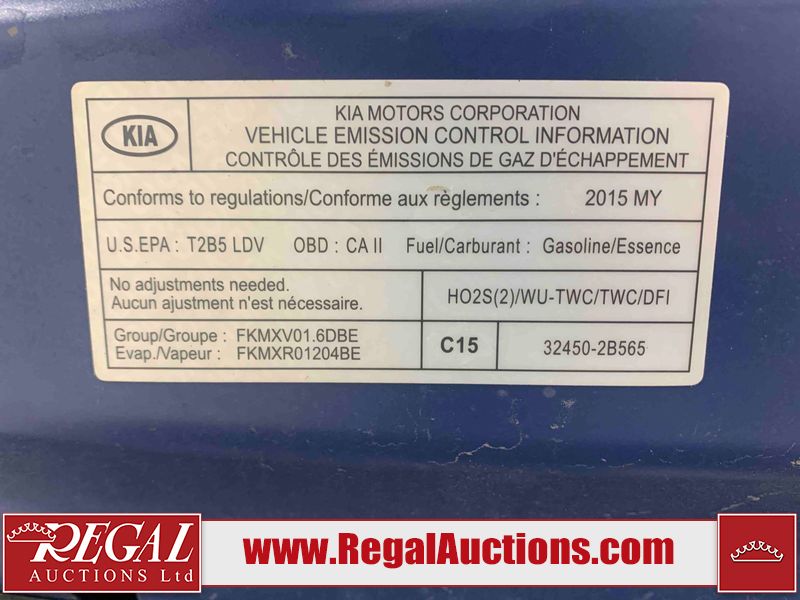 This 2015 KIA RIO 5D HATCHBACK FWD is powered by a 1.6L 4-cylinder gasoline engine and an automatic transmission. The car has seats for 5 people. The car has low mileage for its age. The body looks to be in fair condition overall. There are chips on the front bumper, hood, left front fender, and right front fender. There are scratches on the front bumper, hood, roof, left front door, left rear door, left rear fender, rear bumper, right rear fender, right rear door, and right front door. There is paint peeling on the hood, left front door, and right front fender. There is rust on the hood. There is incidental hail on the roof and right rear fender. There are very minor chips in many areas around the body. There are very minor scratches in a few areas around the body. There is very minor dent damage on the left rear door. The interior looks to be in fair condition overall. There is moderate stained on the driver's seat, passenger seat, and rear seats. The doors are worn. The windshield is chipped. Both passenger side tires are nearly bald and should be replaced. Both driver's side tires are worn. This car is being sold by an automotive broker. The vehicle will be sold with the following declarations Out of Province - BC (See Footnote 2), and Out of Province - AB OVERRIDE (See Footnote 3). Footnotes: 2) The vehicle's last egistered jurisdiction is British Columbia. The purchaser must have the vehicle undergo and pass an Out of Province inspection before it can be registered in Alberta. 3) Out of province inspection for registering the vehicle in Alberta has been completed. Regal Auctions Ltd. makes no guarantee or warranty, either express or implied, with respect to the data provided in this report. The information has been provided from the consignor and from sources generally believed to be reliable, however the accuracy of this information cannot be guaranteed by Regal Auctions.