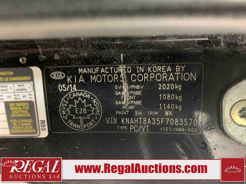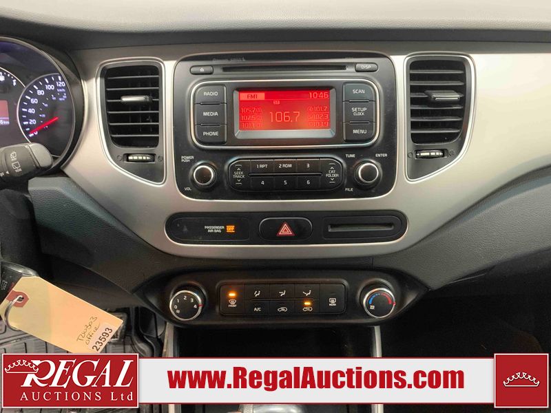 This 2015 KIA RONDO GDI 4D UTILITY is powered by a 2.0 liter 4 cylinder gasoline engine and an automatic transmission. The car has seats for 5 people. The car has low mileage for its age. The vehicle has high value options including heated seats, navigation, and a backup camera. The body looks to be in good condition overall. There is incidental dent damage on the left front door. There is incidental rust on the left front door. There are chips in many areas around the body. There are scratches in many areas around the body. There is dent damage on the left rear fender. The interior looks to be in good condition overall. The windshield is chipped. All of the tires have lots of tread remaining. This car is being sold by an automotive broker. The vehicle will be sold with the following declarations: Out of Province - BC (See Footnote 1) and Out of Province - AB OVERRIDE (See Footnote 2). Footnotes: 1) The vehicle's last registered jurisdiction is British Columbia. The purchaser must have the vehicle undergo and pass an Out of Province inspection before it can be registered in Alberta. 2) Out of province inspection for registering the vehicle in Alberta has been completed. Regal Auctions Ltd. makes no guarantee or warranty, either express or implied, with respect to the data provided in this report. The information has been provided from the consignor and from sources generally believed to be reliable, however the accuracy of this information cannot be guaranteed by Regal Auctions.