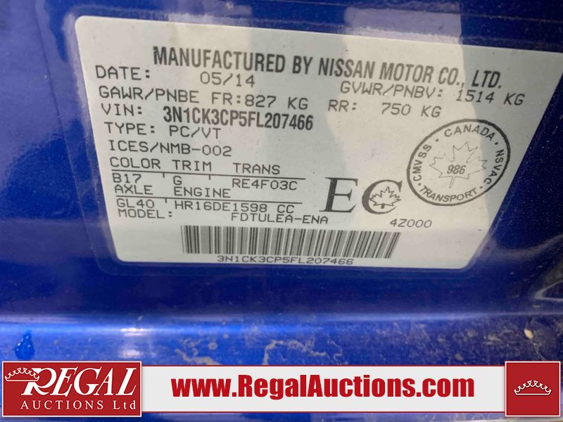 This 2015 NISSAN MICRA 4D HATCHBACK is powered by a 1.6L V6 gasoline engine and an automatic transmission. The car has seats for 5 people. The car has low mileage for its age. The vehicle has some mechanical problems. *CRANKS SLOW - POSSIBLE STARTER PROBLEMS* (See Footnote 1) The Brake System light is on. The body looks to be in fair condition overall. The front bumper is cracked. There are minor chips on the front bumper, hood, and roof. There are minimal scratches on the front bumper, left front door, right rear door, and right front fender. There is slight rust on the hood, left front fender, and left rear fender. There is dent damage on the left rear fender and right front fender. There are very minor chips in many areas around the body. There are very minor scratches in many areas around the body. The interior looks to be in good condition overall. The windshield is cracked. All of the tires have lots of tread remaining. This car is being sold by an automotive broker. The vehicle will be sold with the following declarations: Mechanical Problems (See Footnote 1). Footnotes: 1) We've identified some mechanical problems with the vehicle. However, the vehicle has not undergone a mechanical inspection and our findings are not to be considered a complete evaluation of the vehicle's mechanical condition. Review our Buyer Protection Policy to see how Regal Auctions protects you from undisclosed mechanical problems. Regal Auctions Ltd. makes no guarantee or warranty, either express or implied, with respect to the data provided in this report. The information has been provided from the consignor and from sources generally believed to be reliable, however the accuracy of this information cannot be guaranteed by Regal Auctions.