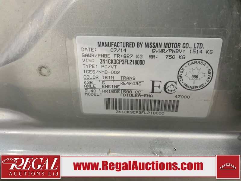 2015 NISSAN MICRA SV 4D HATCHBACK FWD 1.6L