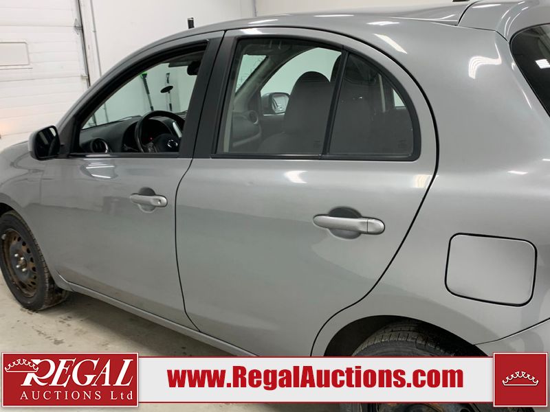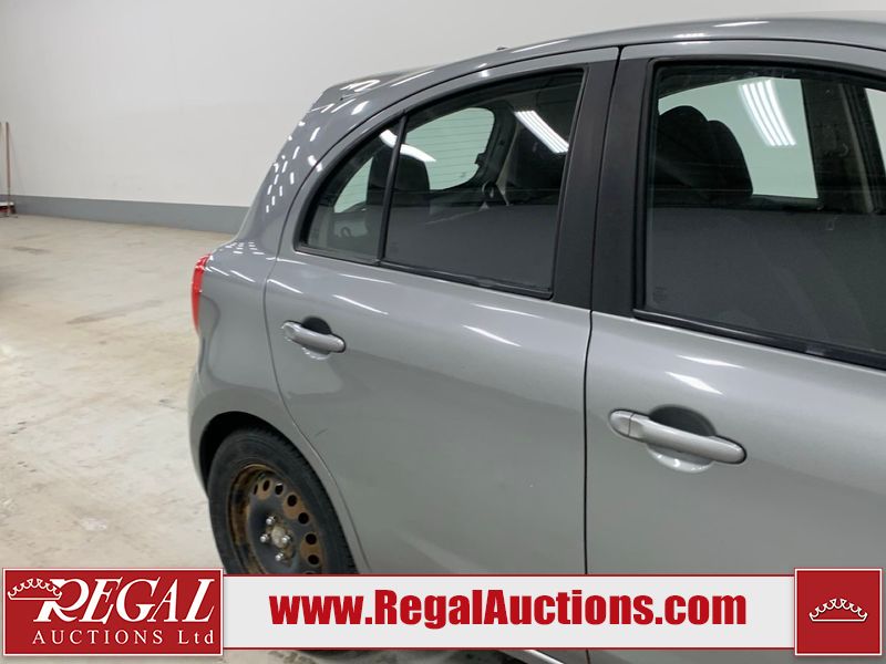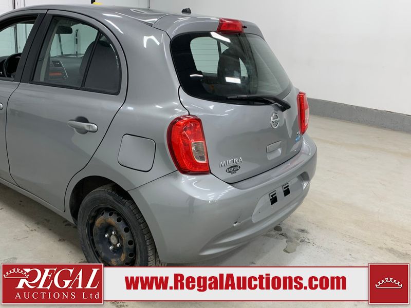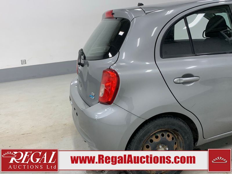 This 2015 NISSAN MICRA SV 4D HATCHBACK FWD 1.6L is powered by a 4 cylinder gasoline engine and an automatic transmission. The car has seats for 5 people. The car has low mileage for its age. The body looks to be in fair condition overall. There is extensive dent damage on the trunk lid. There are chips on the front bumper, hood, rear bumper, and trunk lid. There are scratches on the front bumper, rear bumper, and right rear door. There is minimal dent damage on the left rear fender and right rear door. There are very minor chips in many areas around the body. There are very minor scratches in many areas around the body. There is very minor dent damage on the left rear door. There is misaligned damage to the rear bumper. The interior looks to be in fair condition overall. The dashboard, driver's seat, passenger seat, rear seats, and doors are dirty. The windshield looks to be in good condition. The driver's side rear tire is worn. All of the other tires have lots of tread remaining.