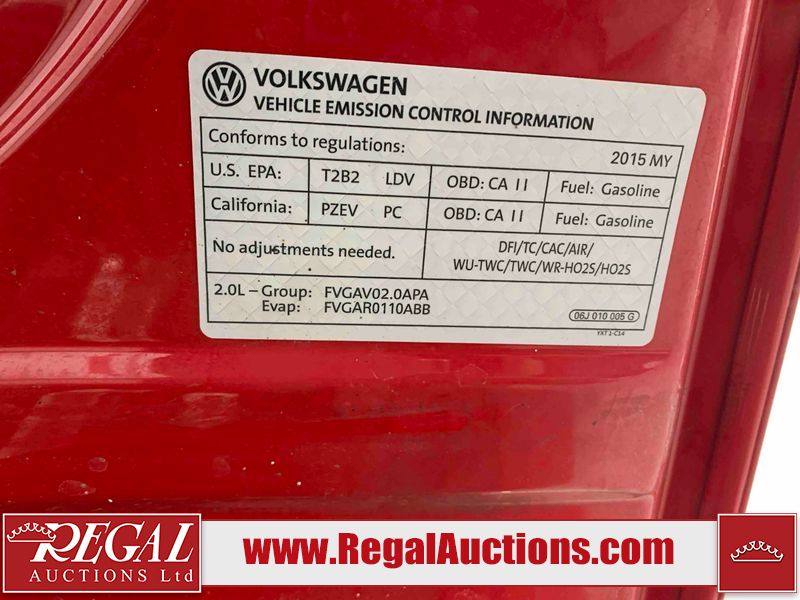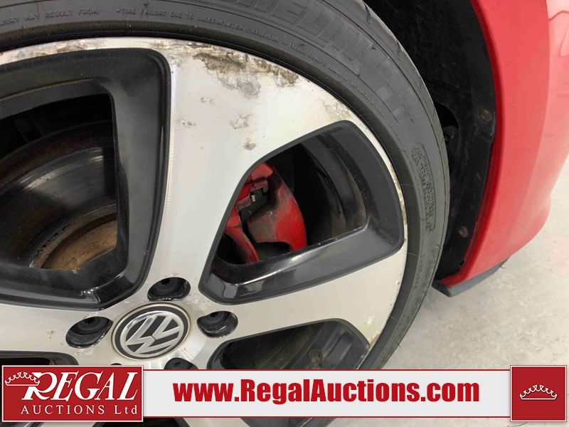This 2015 VOLKSWAGEN GTI 4D SEDAN is powered by a turbocharged 2.0L 4-cylinder gasoline engine and a 6-speed manual transmission. The car has seats for 5 people. The mileage is average considering the car's age. The vehicle has high-value options including a sunroof, leather upholstery, power seats, heated seats, navigation, and a backup camera. The body looks to be in fair condition overall. The front bumper is broken. There are incidental scratches on the front bumper, left front fender, left rear door, left rear fender, rear bumper, and right rear fender. There are slight chips on the left front fender. There are very minor chips in many areas around the body. There are very minor scratches in many areas around the body. There is paint peeling on the rear bumper. The interior looks to be in good condition overall. The windshield looks to be in good condition. The front tires are both worn. The rear tires both have lots of tread remaining. This car is being sold by an automotive broker. The vehicle will be sold with the following declarations: Claims Total $10,000 - $14,999 (See Footnote 1). Footnotes: 1) The vehicle's total recorded insurance claims history is between $10,000 - $14,999. This is the amount of money that was paid out by an insurance company for repairs to cover claims against the vehicle's insurance policy. This information is provided by CarFax. Regal Auctions Ltd. makes no guarantee or warranty, either express or implied, with respect to the data provided in this report. The information has been provided from the consignor and from sources generally believed to be reliable, however the accuracy of this information cannot be guaranteed by Regal Auctions.