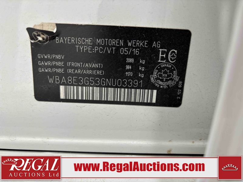 This 2016 BMW 328I 4D SEDAN is powered by a 2.0L 4-cylinder gasoline engine and an automatic transmission. It is equipped with all-wheel drive. The car has seats for 5 people. The mileage is average considering the car's age. The vehicle has high-value options including a sunroof, leather upholstery, power seats, heated seats, and a backup camera. The General light is on. The body looks to be in fair condition overall. There are chips on the front bumper, hood, right rear fender, and right front fender. There is rust on the left front fender, trunk lid, right rear fender, and right front fender. There are slight scratches on the left front door and rear bumper. There are very minor scratches in many areas around the body. There are very minor chips in many areas around the body. There is very minor dent damage in a few areas around the body. The interior looks to be in good condition overall. The windshield is cracked. All of the tires have lots of tread remaining. This car is being sold by a franchise dealership. The vehicle will be sold with the following declarations: Dealership Trade-In (See Footnote 1) and Out of Province - BC (See Footnote 2). Footnotes: 1) This vehicle is being sold on behalf of a franchise dealership. Franchise Dealerships are automotive sales companies who are directly connected to an automotive manufacturer like Ford, Tesla, Honda, BMW, or similar. 2) The vehicle's last registered jurisdiction is British Columbia. The purchaser must have the vehicle undergo and pass an Out of Province inspection before it can be registered in Alberta. Regal Auctions Ltd. makes no guarantee or warranty, either express or implied, with respect to the data provided in this report. The information has been provided from the consignor and from sources generally believed to be reliable, however the accuracy of this information cannot be guaranteed by Regal Auctions.