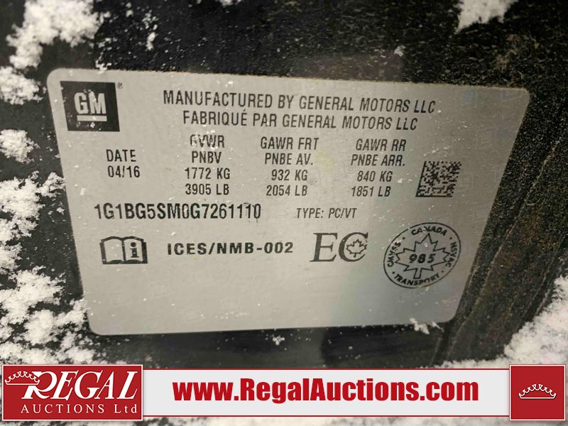 This 2016 CHEVROLET CRUZE 4D SEDAN is powered by a turbocharged 1.4L 4CYL GAS 4 engine and an automatic transmission. The car has seats for 5 people. The car has low mileage for its age. The vehicle has high value options including leather upholstery, power seats, and a backup camera. The body looks to be in fair condition overall. There are minor chips on the front bumper, hood, roof, left front door, left rear door, left rear fender, rear bumper, right front door, and right front fender. There are minimal scratches on the left front fender, rear bumper, trunk lid, right rear fender, and right rear door. There are very minor scratches in many areas around the body. There are very minor chips in many areas around the body. The interior looks to be in good condition overall. The windshield looks to be in good condition. All of the tires have lots of tread remaining. This car is being sold by an automotive broker. Regal Auctions Ltd. makes no guarantee or warranty, either express or implied, with respect to the data provided in this report. The information has been provided from the consignor and from sources generally believed to be reliable, however the accuracy of this information cannot be guaranteed by Regal Auctions.