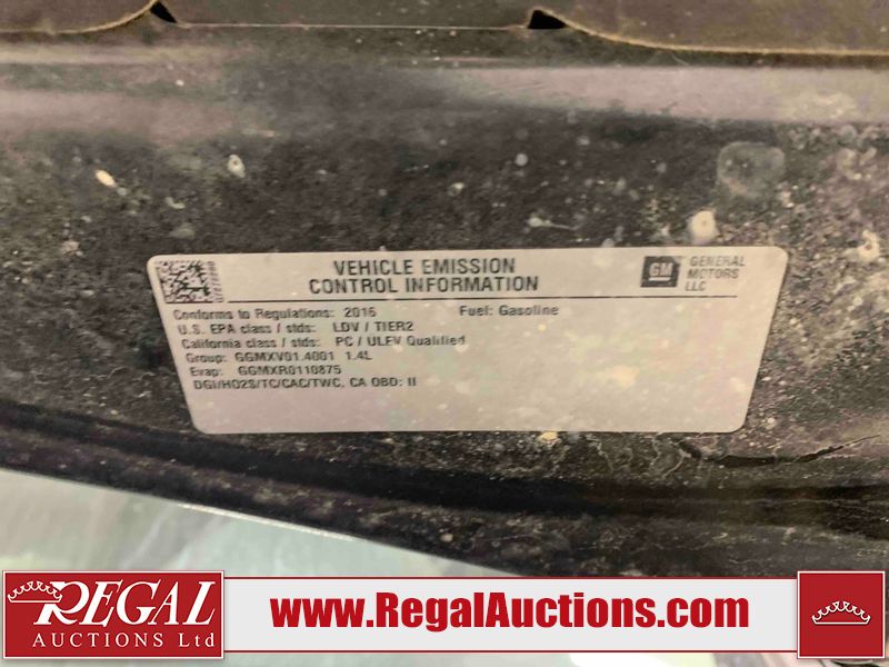 This 2016 CHEVROLET CRUZE 4D SEDAN is powered by a turbocharged 1.4L 4-cylinder gasoline engine and a 6-speed manual transmission. The car has seats for 5 people. The car has low mileage for its age. The vehicle has high-value options including a sunroof, power seats, heated seats, and a backup camera. The Tire Pressure and Check Engine lights are on. The body looks to be in fair condition overall. There are minor chips on the front bumper and hood. There are incidental scratches on the front bumper, hood, roof, and right rear fender. There is minimal dent damage on the left rear door and right rear fender. There are very minor chips in many areas around the body. There is very minor dent damage on the hood. There are very minor scratches in many areas around the body. The interior looks to be in good condition overall. There are noteworthy stained on the driver's seat. The windshield is damaged. All of the tires have lots of tread remaining. This car is being sold by an automotive broker. Regal Auctions Ltd. makes no guarantee or warranty, either express or implied, with respect to the data provided in this report. The information has been provided from the consignor and from sources generally believed to be reliable, however the accuracy of this information cannot be guaranteed by Regal Auctions.