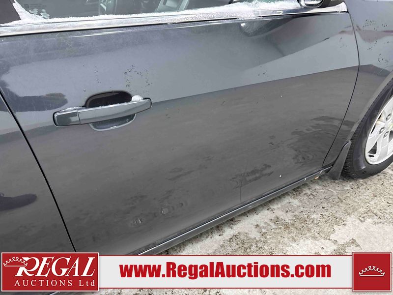 This 2016 CHEVROLET MALIBU LS 4D SEDAN is powered by a 2.5 liter 4-cylinder gasoline engine and an automatic transmission. The car has seats for 5 people. The mileage is average considering the car's age. The Tire Pressure light is on. The body looks to be in fair condition overall. The front bumper is cracked. There is moderate rust on the right rear fender. The right rear fender has been repainted poorly. There is minor dent damage on the left front fender. There are chips on the left rear fender. There is rust on the left rear fender. There are chips in many areas around the body. There are scratches in many areas around the body. There is dent damage on the trunk lid. The interior looks to be in good condition overall. There are cigarette burns on the driver seat. The windshield looks to be in good condition. Both rear tires are nearly bald and should be replaced. The front tires have lots of tread remaining. This car is being sold by an automotive broker. The vehicle will be sold with the following declarations: Claims Total $5000 - $9999 (See Footnote 1). Footnotes: 1) The vehicle's total recorded insurance claims history is between $5,000 - $9,999. This is the amount of money that was paid out by an insurance company for repairs to cover claims against the vehicle's insurance policy. This information is provided by CarFax. Regal Auctions Ltd. makes no guarantee or warranty, either express or implied, with respect to the data provided in this report. The information has been provided from the consignor and from sources generally believed to be reliable, however the accuracy of this information cannot be guaranteed by Regal Auctions.