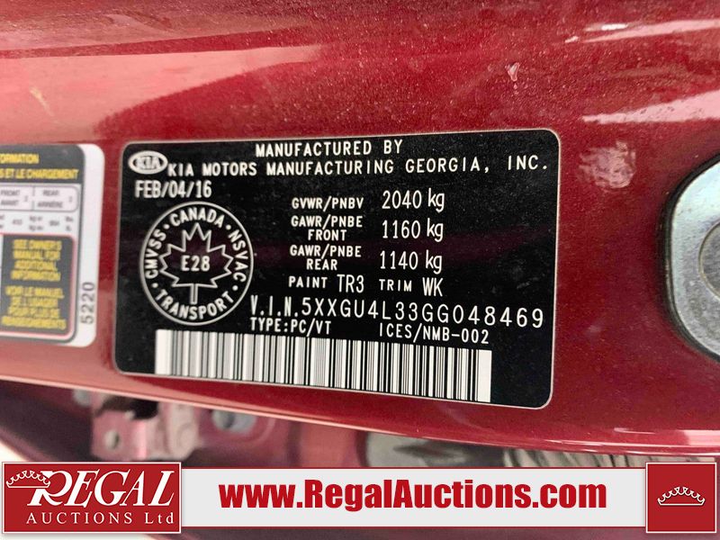 This 2016 KIA OPTIMA EX 4D SEDAN is powered by a turbocharged 2.4L 4-cylinder gasoline engine and an automatic transmission. The car has seats for 5 people. The car has low mileage for its age. The vehicle has high value options including a sunroof, power/heated seats, and a backup camera. The body looks to be in good condition overall. There are very minor chips in many areas around the body. There are very minor scratches in many areas around the body. There is very minor dent damage on the hood. The interior looks to be in good condition overall. The windshield is cracked. All of the tires have lots of tread remaining. This car is being sold by a franchise dealership. The vehicle will be sold with the following declarations: Dealership Trade-In (See Footnote 1). Footnotes: 1) This vehicle is being sold on behalf of a franchise dealership. Franchise Dealerships are automotive sales companies who are directly connected to an automotive manufacturer like Ford, Tesla, Honda, BMW, or similar. Regal Auctions Ltd. makes no guarantee or warranty, either express or implied, with respect to the data provided in this report. The information has been provided from the consignor and from sources generally believed to be reliable, however the accuracy of this information cannot be guaranteed by Regal Auctions.