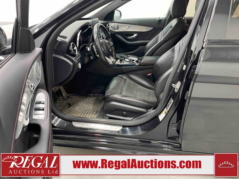This 2016 MERCEDES-BENZ C-CLASS C450AMG 4D SEDAN AWD 3.0L is powered by a turbocharged 3.0L6C 6 cylinder gasoline engine and an automatic transmission. It is equipped with four wheel drive. The car has seats for 5 people. The mileage is average considering the car's age. The vehicle has high value options including a sunroof, leather upholstery, power seats, heated seats, navigation, and a backup camera. The body looks to be in good condition overall. There are chips on the front bumper, hood, left front fender, and rear bumper. There are scratches on the rear bumper. There are very minor scratches in many areas around the body. There are very minor chips in many areas around the body. There is very minor dent damage on the left front door. The interior looks to be in good condition overall. The carpet is dirty. The windshield is cracked. The passenger side rear tire is worn. All of the other tires have lots of tread remaining. There is no emissions sticker.