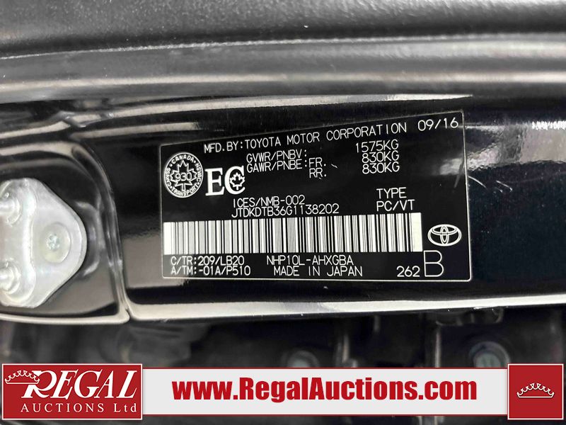 This 2016 TOYOTA PRIUS C 4D HATCHBACK FWD is powered by a 1.5L 4-cylinder hybrid engine and an automatic transmission. The car has seats for 5 people. The car has low mileage for its age. The vehicle has high-value options including a sunroof, leather upholstery, and a backup camera. The body looks to be in rough condition overall. The front bumper is broken. There is moderate hail on the hood, roof, and trunk lid. There are moderate scratches on the roof. There are scratches on the front bumper, hood, left front fender, left front door, left rear door, left rear fender, rear bumper, right front door, and right front fender. There is slight dent damage on the roof. There are very minor chips in many areas around the body. There are very minor scratches in a few areas around the body. There is very minor dent damage in a few areas around the body. The interior looks to be in good condition overall. The windshield is chipped. All of the tires have lots of tread remaining. This car is being sold by an automotive broker. The vehicle will be sold with the following declarations: Claims Total $1000 - $2999 (See Footnote 1), Hail Damage (See Footnote 2), Out of Province - BC (See Footnote 3), and Out of Province - AB OVERRIDE (See Footnote 4). Footnotes: 1) The vehicle's total recorded insurance claims history is between $1,000 - $2,999. This is the amount of money that was paid out by an insurance company for repairs to cover claims against the vehicle's insurance policy. This information is provided by CarFax. 2) This vehicle shows signs of damage from a hail storm. Hail damage is not always clearly visible in photographs. 3) The vehicle's last registered jurisdiction is British Columbia. The purchaser must have the vehicle undergo and pass an Out of Province inspection before it can be registered in Alberta. 4) Out of province inspection for registering the vehicle in Alberta has been completed. Regal Auctions Ltd. makes no guarantee or warranty, either express or implied, with respect to the data provided in this report. The information has been provided from the consignor and from sources generally believed to be reliable, however the accuracy of this information cannot be guaranteed by Regal Auctions.
