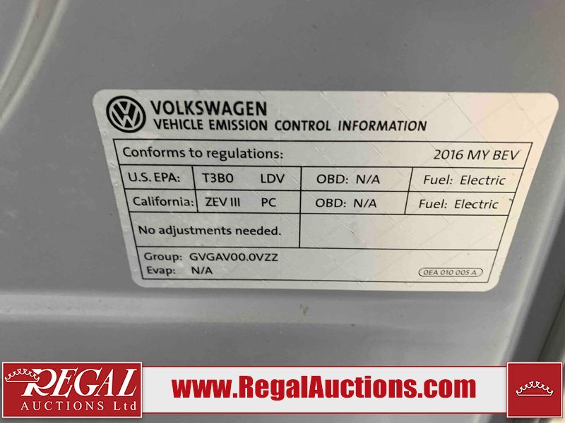 This 2016 VOLKSWAGEN E-GOLF SE 4D HATCHBACK FWD is powered by a 85KW ELECTRIC LITHIUM-ION BA electric motor and an automatic transmission. The car has seats for 5 people. The car has low mileage for its age. The vehicle has high value options including power seats, heated seats, and a backup camera. The body looks to be in good condition overall. There are minimal chips on the front bumper, hood, and left front fender. There are minor scratches on the front bumper. The left rear fender has been repainted. There are very minor chips in many areas around the body. There are very minor scratches in many areas around the body. There is very minor dent damage in some areas around the body. The interior looks to be in good condition overall. The windshield is chipped. All of the tires have lots of tread remaining.