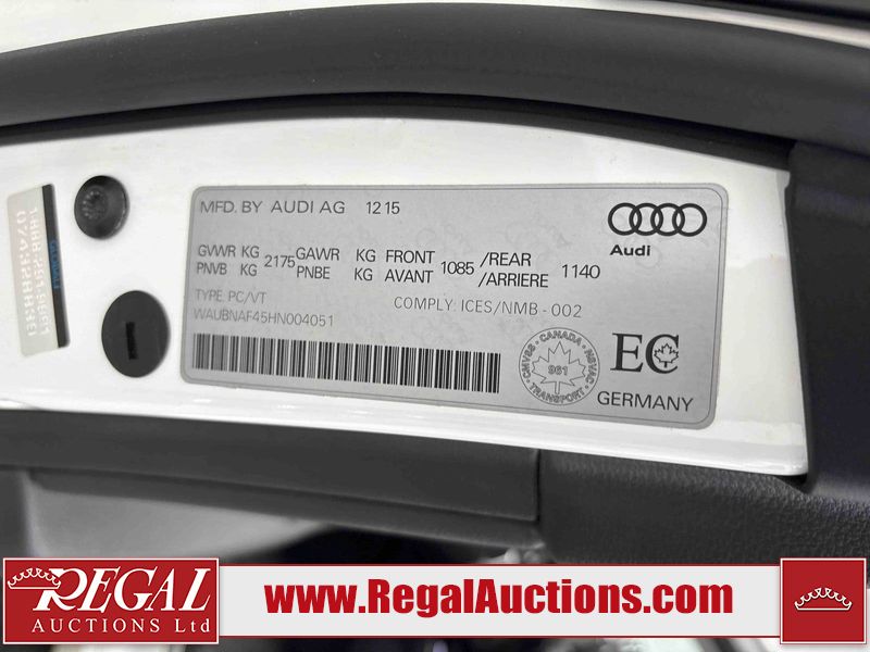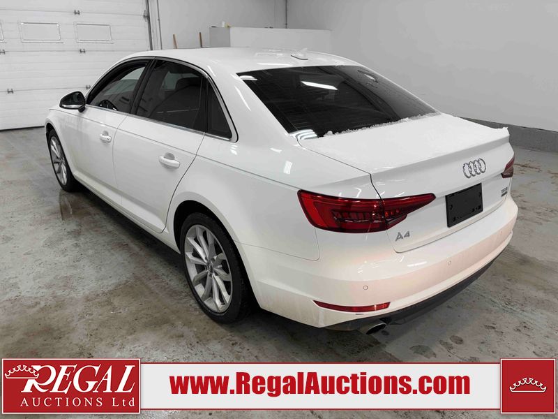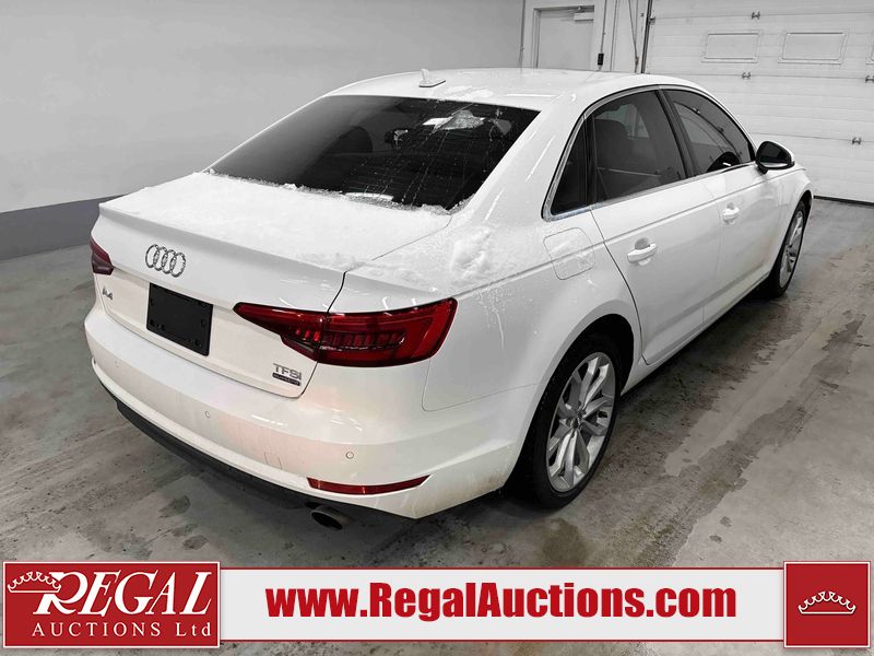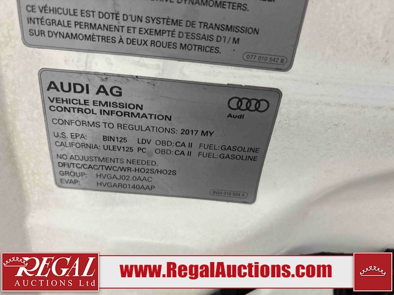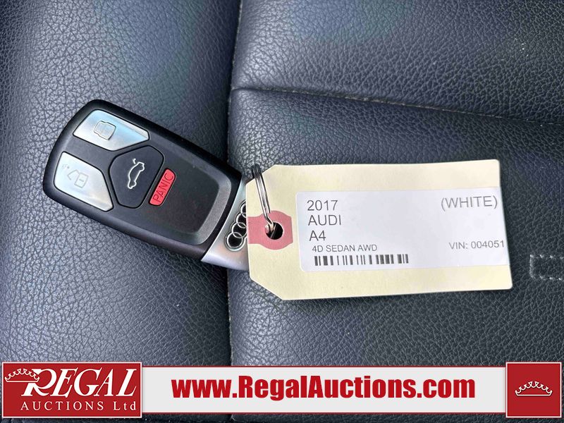 This 2017 AUDI A4 4D SEDAN AWD is powered by a 2.0L 4-cylinder gasoline engine and an automatic transmission. It is equipped with all-wheel drive. The car has seats for 5 people. The mileage is average considering the car's age. The vehicle has high-value options including leather upholstery and power seats. The body looks to be in good condition overall. The right front door has been repainted poorly. There is slight rust on the right front door. There are very minor chips in many areas around the body. There are very minor scratches in many areas around the body. The interior looks to be in good condition overall. The windshield is chipped. The front tires are nearly bald and should be replaced. The rear tires are worn. This car is being sold by an automotive broker. The vehicle will be sold with the following declarations: Claims Total Above $20,000 (See Footnote 1), Out of Province - QC (See Footnote 2), and Out of Province - AB OVERRIDE (See Footnote 3). Footnotes: 1) The vehicle's total recorded insurance claims history is above $20,000. This is the amount of money that was paid out by an insurance company for repairs to cover claims against the vehicle's insurance policy. This information is provided by CarFax. 2) The vehicle's last registered jurisdiction is Quebec. The purchaser must have the vehicle undergo and pass an Out of Province inspection before it can be registered in Alberta. 3) Out of province inspection for registering the vehicle in Alberta has been completed. Regal Auctions Ltd. makes no guarantee or warranty, either express or implied, with respect to the data provided in this report. The information has been provided from the consignor and from sources generally believed to be reliable, however the accuracy of this information cannot be guaranteed by Regal Auctions.