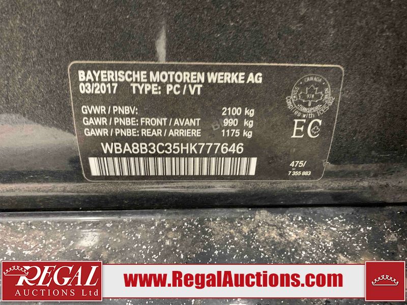 This 2017 BMW 3-SERIES 4D SEDAN is powered by a turbocharged 3.0L 6-cylinder gasoline engine and an automatic transmission. The car has seats for 5 people. The car has low mileage for its age. The vehicle has high-value options including a sunroof, leather upholstery, power seats, heated seats, navigation, and a backup camera. The body looks to be in good condition overall. There are slight chips on the front bumper, hood, and left front fender. There are minimal scratches on the left front door, left rear door, left rear fender, rear bumper, right rear fender, right rear door, right front door, and right front fender. The headlights are broken. The tail lights are broken. The interior looks to be in good condition overall. The driver side mirror housing is broken. All of the tires have lots of tread remaining. This car is being sold by an automotive broker. The vehicle will be sold with the following declarations: Out of Province - NB (See Footnote 1). Footnotes: 1) The vehicle's last registered jurisdiction is New Brunswick. The purchaser must have the vehicle undergo and pass an Out of Province inspection before it can be registered in Alberta. Regal Auctions Ltd. makes no guarantee or warranty, either express or implied, with respect to the data provided in this report. The information has been provided from the consignor and from sources generally believed to be reliable, however the accuracy of this information cannot be guaranteed by Regal Auctions.