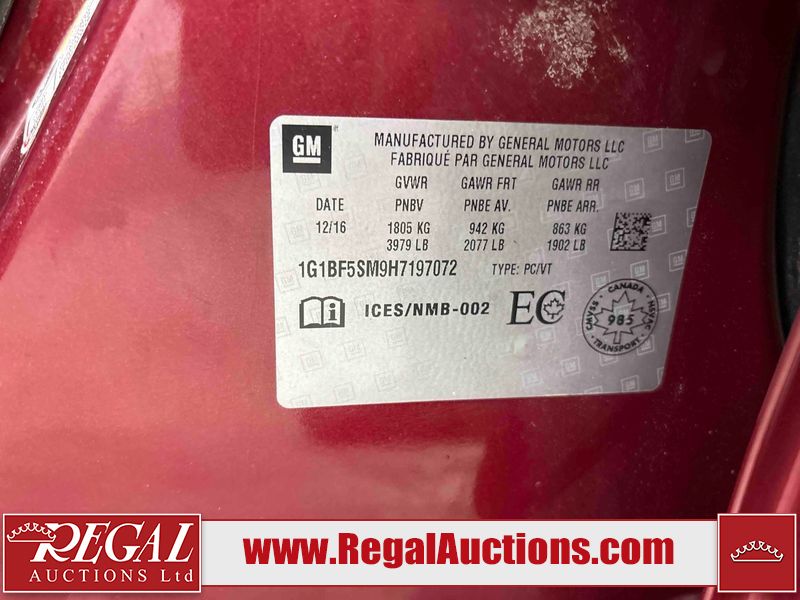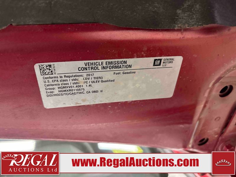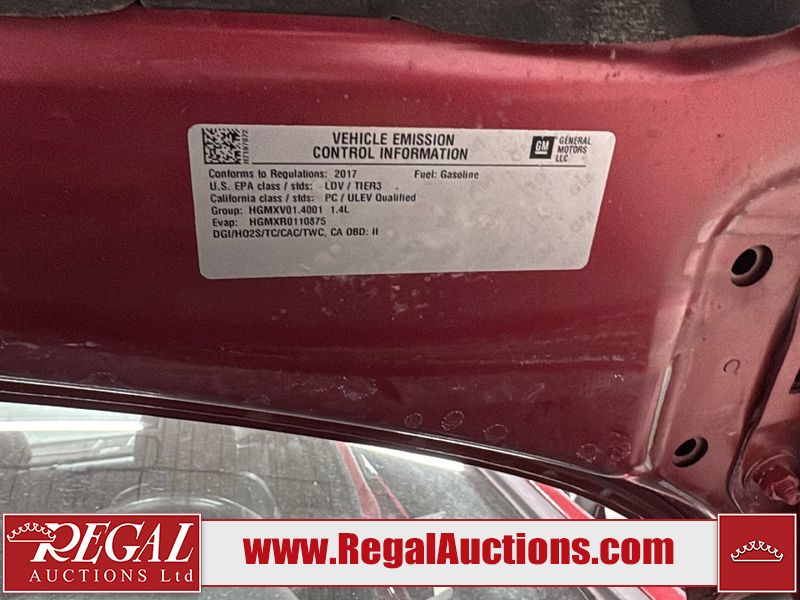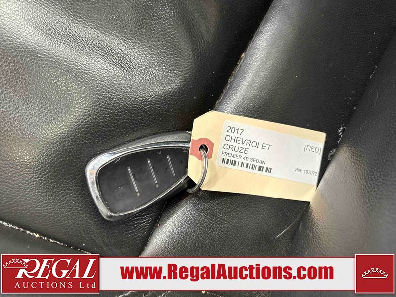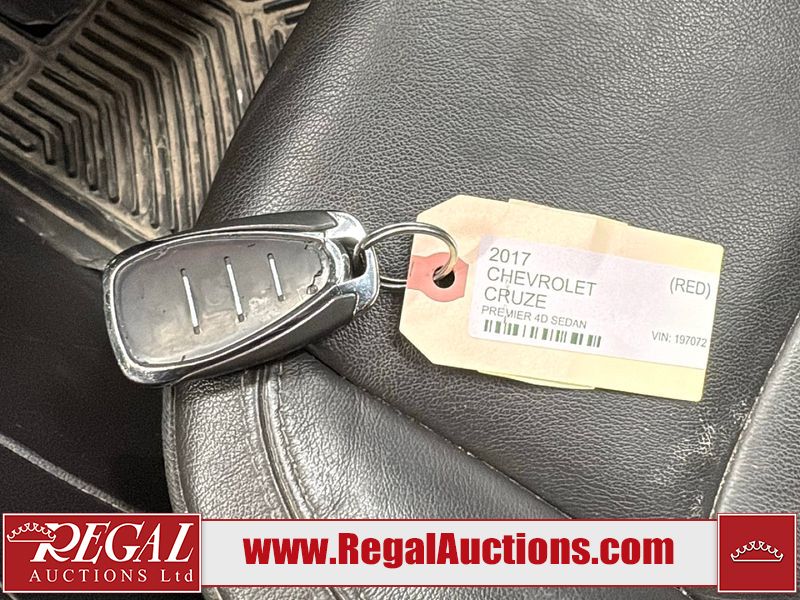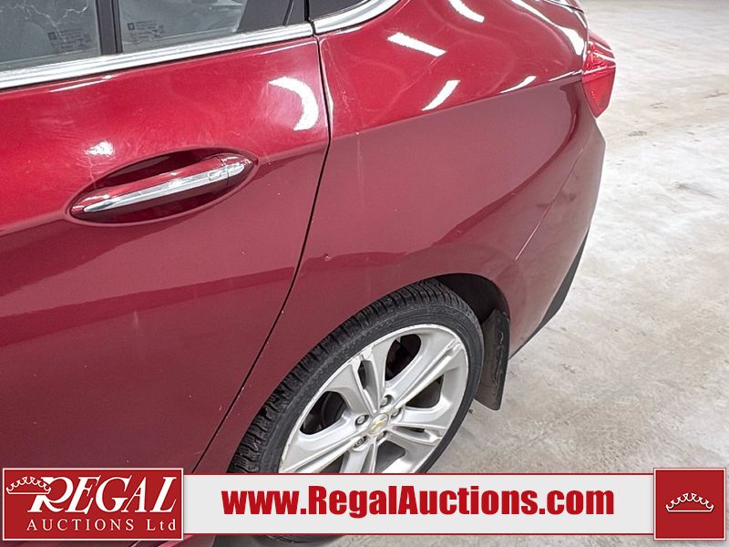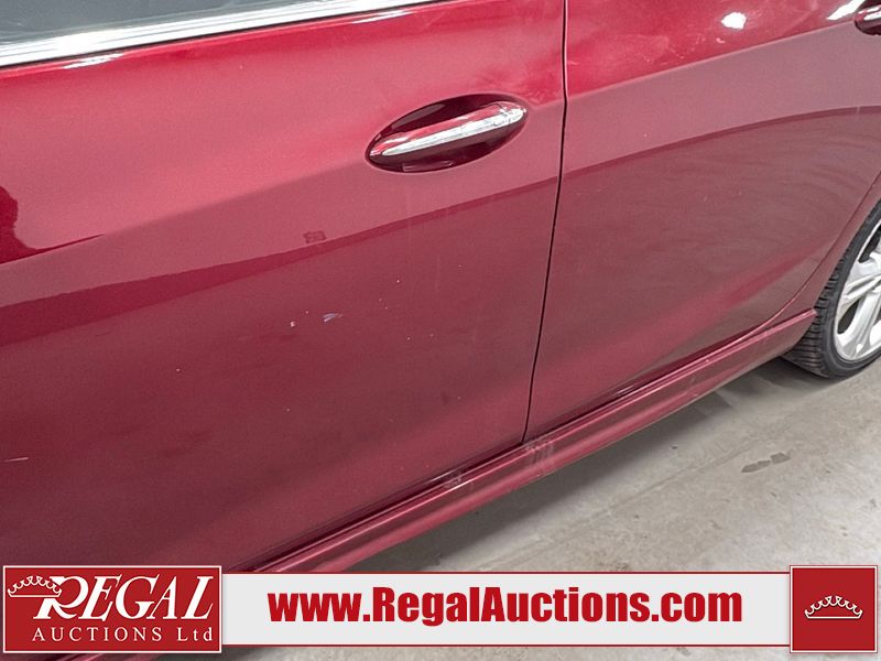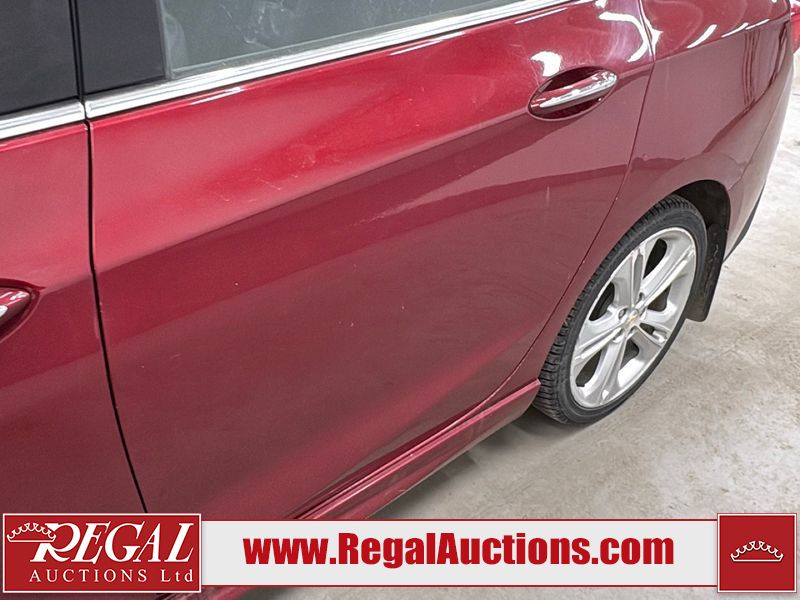 This 2017 CHEVROLET CRUZE PREMIER 4D SEDAN is powered by a turbocharged 1.4 liter 4 cylinder gasoline engine and an automatic transmission. The car has seats for 5 people. The car has high mileage for its age. The vehicle has high value options including leather upholstery, power seats, navigation, and a backup camera. The body looks to be in good condition overall. There is minimal dent damage on the left front fender. There is rust on the left front fender. There are minor scratches on the left front door. There are chips in many areas around the body. There are scratches in many areas around the body. There is dent damage on the hood. The interior looks to be in good condition overall. The windshield is cracked. The passenger side front tire is nearly bald and should be replaced. The driver's side front tire and the passenger side rear tire are both worn. This car is being sold by an automotive broker. Regal Auctions Ltd. makes no guarantee or warranty, either express or implied, with respect to the data provided in this report. The information has been provided from the consignor and from sources generally believed to be reliable, however the accuracy of this information cannot be guaranteed by Regal Auctions.